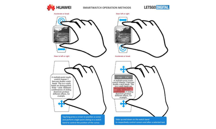 From the patent literature, the gaming watch from Huawei will use gestures to control the UI and other general operation. This includes scrolling, selecting and interacting with apps on the watch, mostly using the touch-sensitive wrist straps. Different controls exist for different orientations too.