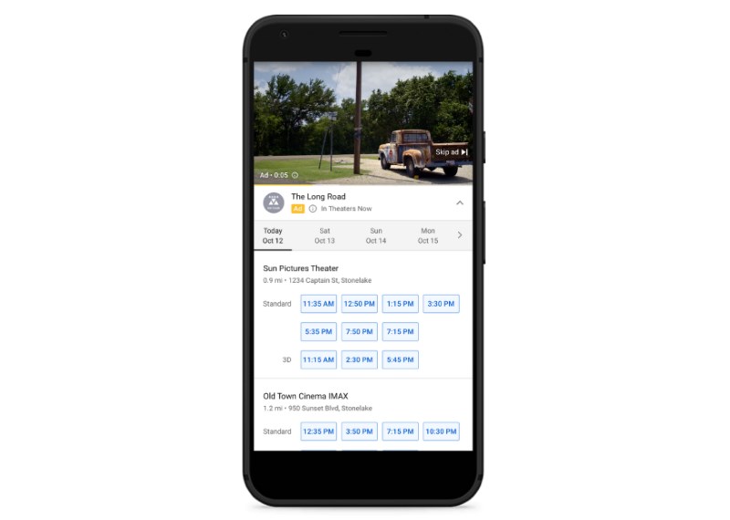 The trouble here is, if you’ve already watched the movie, then the ad will be doubly intrusive, as the plugin where you pick your desired showtime takes over a major portion of the screen, as shown in Google’s own mobile screenshot.