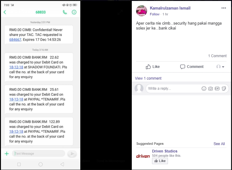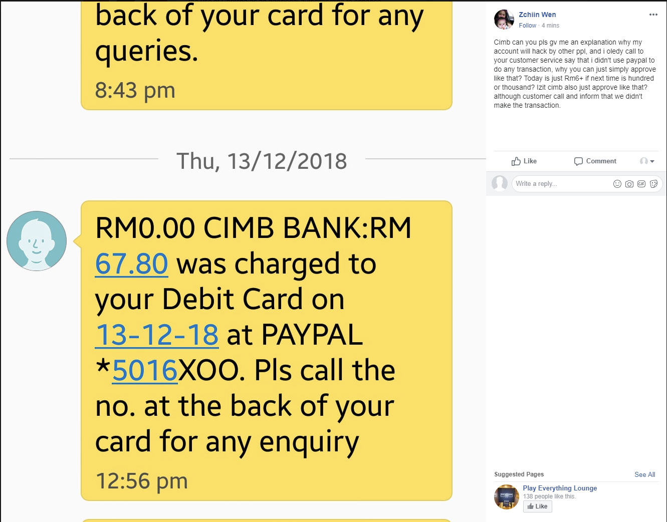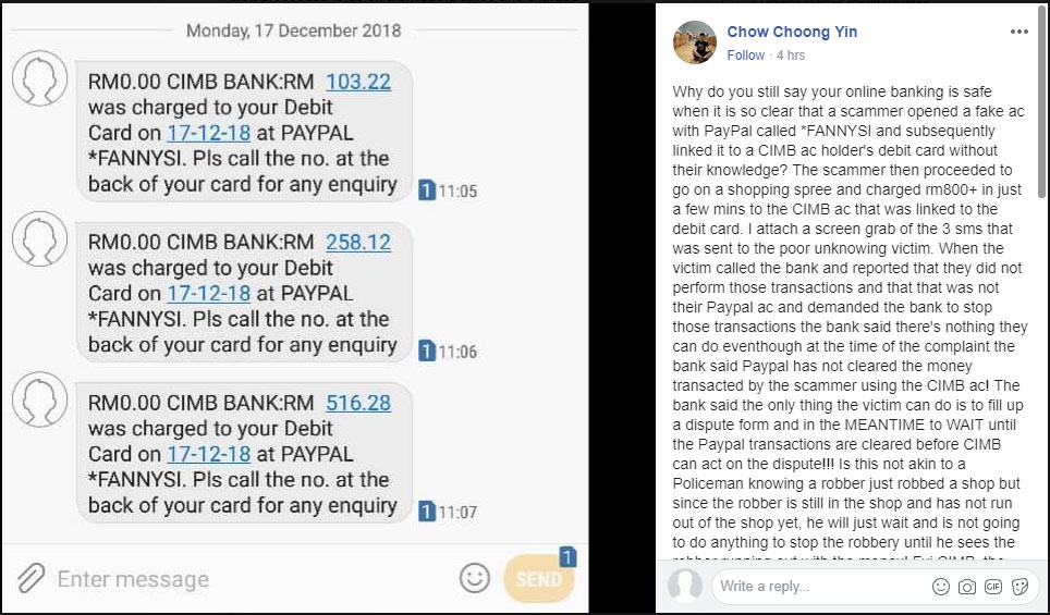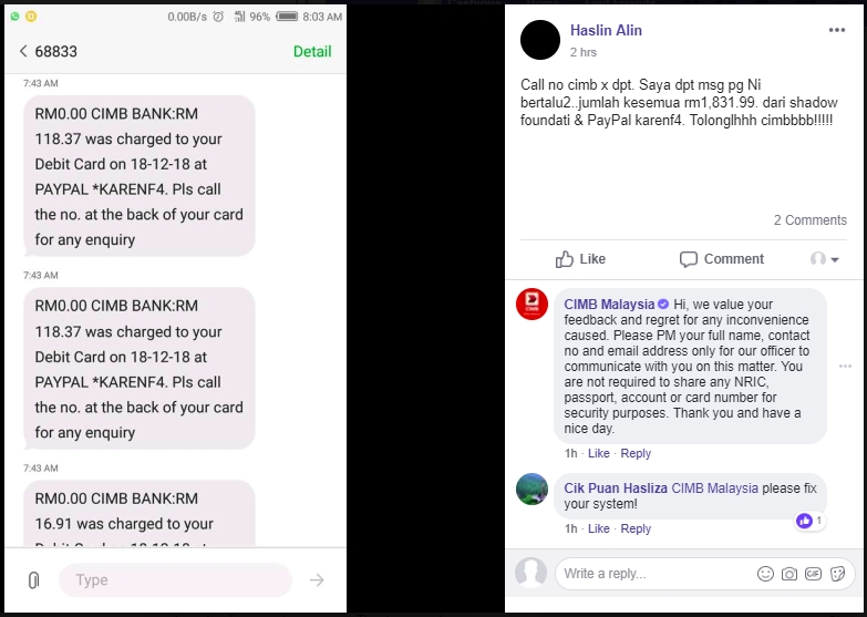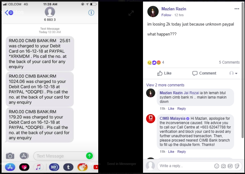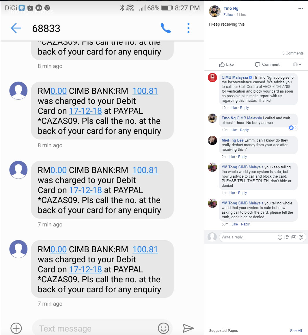 The above are a small collection of screenshots taken from the comments section of a single post on CIMB Malaysia’s Facebook page, highlighting users who are facing issue with unauthorized transactions with their CIMB Debit Card. Some of these customers have never even used their Debit Cards for online transactions. The victims are also scattered all over the country ruling out the possibility that this affected only customers from a single branch.