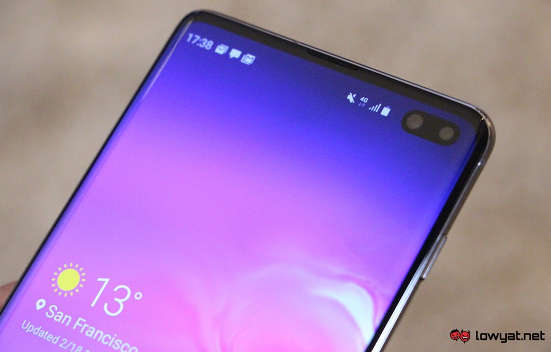 One of the most noticeable traits of Galaxy S10+ is its Infinity-O display which houses a pair of cameras within the phone’s Dynamic AMOLED display. These cameras are inclusive of a 10MP dual-pixel autofocus camera with f/1.9 lens and another 8MP fixed focus camera with f/2.2 90-degrees lens that acts as an RGB depth sensor.
