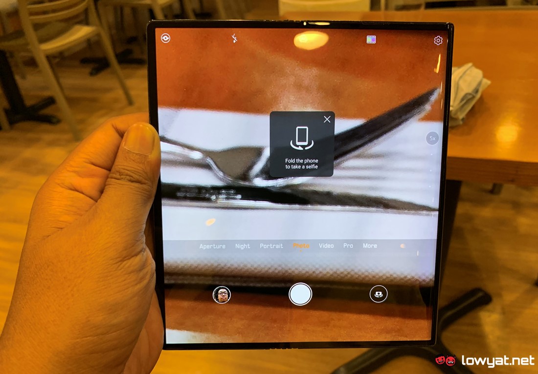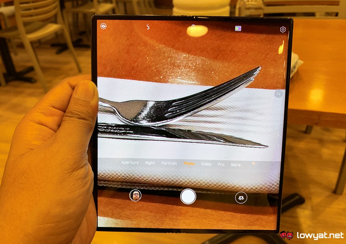 When the screen which has quite a punchy and vibrant output is fully unfolded, there is no visible distortion can be seen or felt within the hinge area. That being said, Mate X can’t be laid flat though due to the existence of its hand grip.