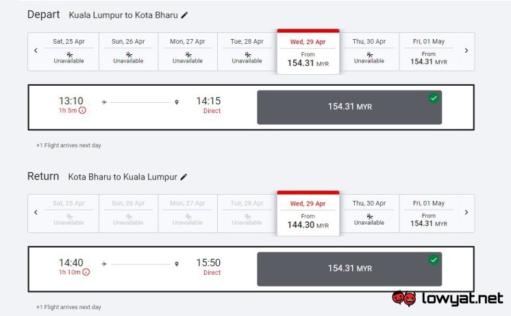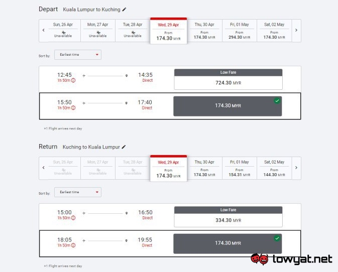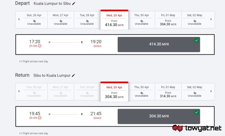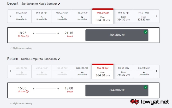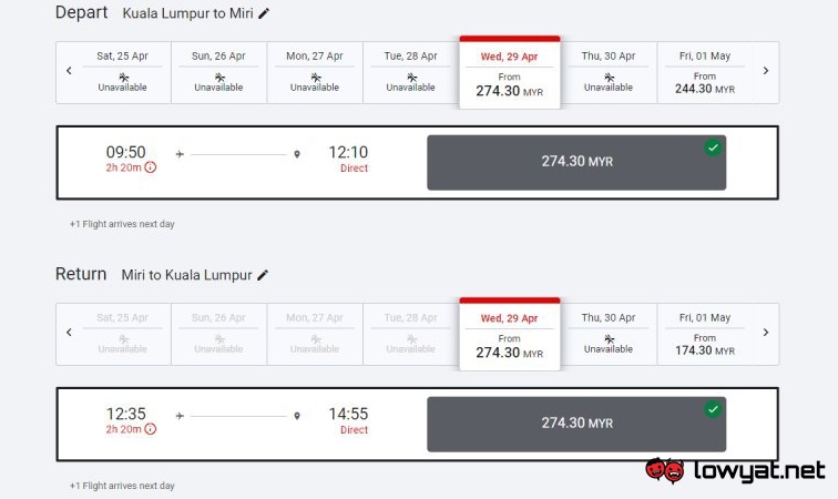 Nevertheless, bookings are already open right now through AirAsia’s official website. Based on my quick check, destinations that are available on 29 April includes Penang, Kota Bharu, Kota Kinabalu, Kuching, Miri, Sibu, and of course, Kuala Lumpur: