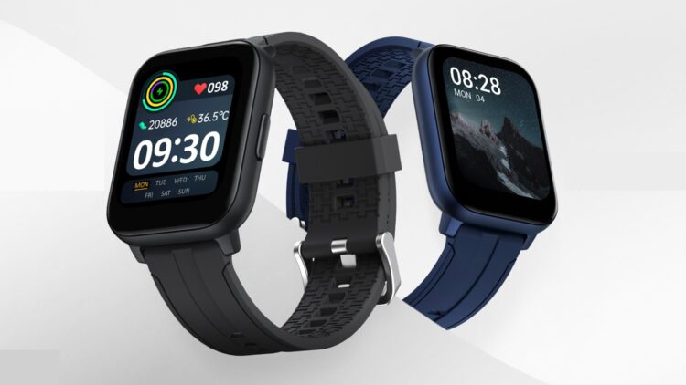 It features a 530-nit peak brightness 1.69-inch LCD display with curved edges and a single button on the side. You can choose from either blue or grey and it has a removable silicone strap. Additionally, you can customise the watch face with over 110 different styles built into the watch.