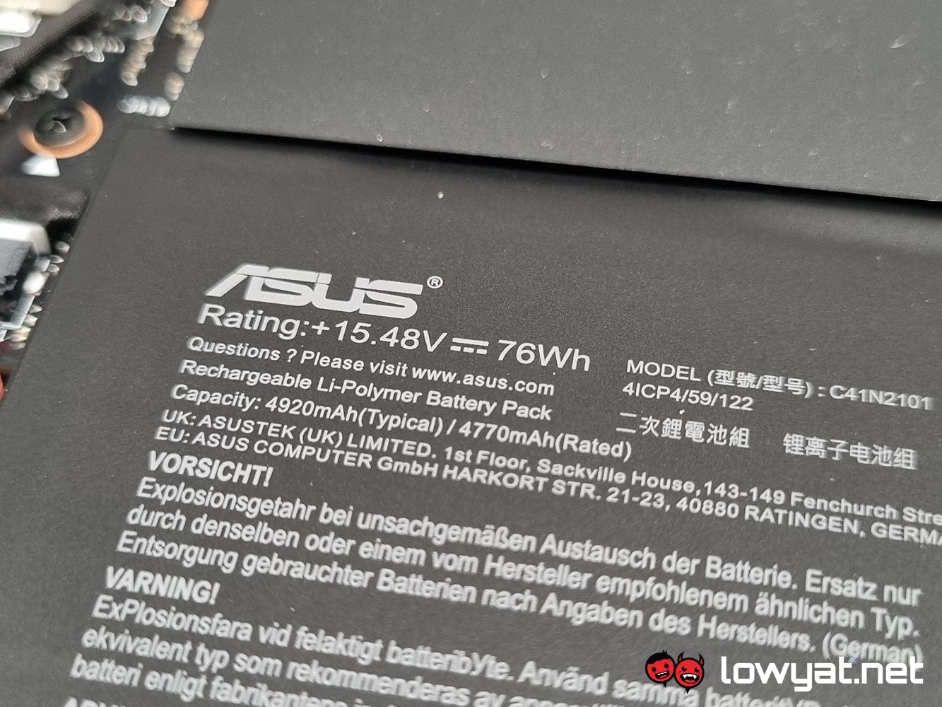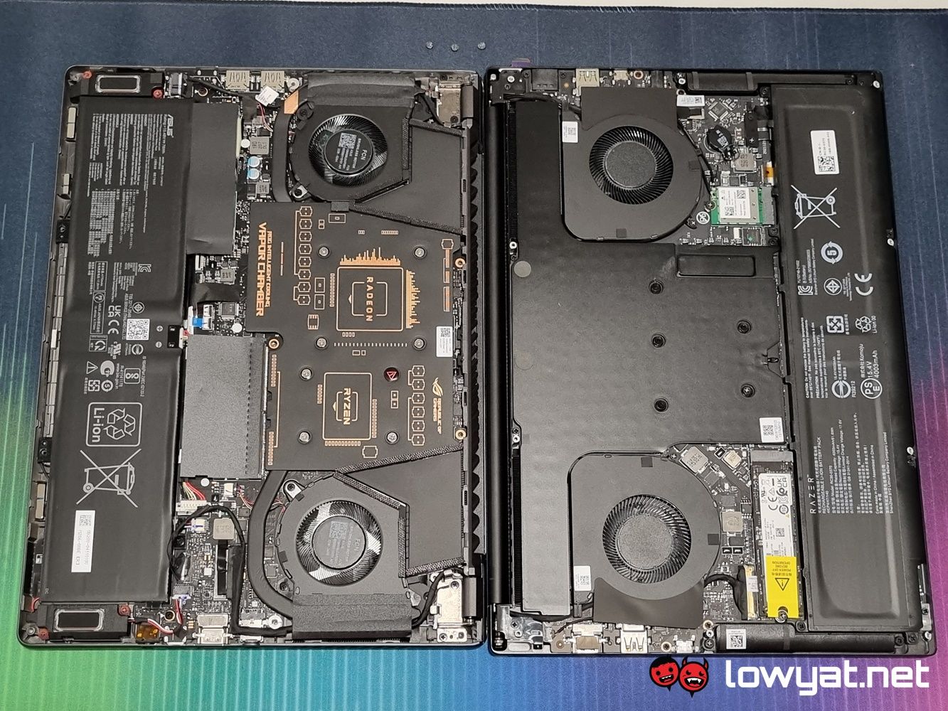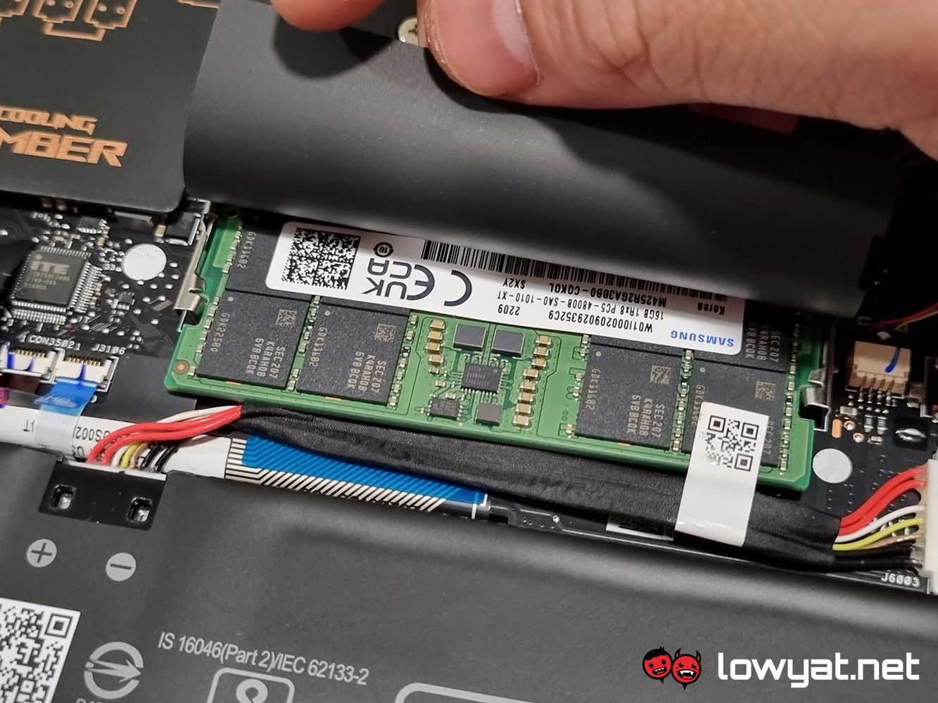 Underneath the hood of the G14 2022, you can see where ASUS actually tidied up on its compartmentalisation skills. Both the AMD Ryzen CPU and Radeon GPU sit right in the upper middle section, their location marked by the Taiwanese brand’s own Vapour Chamber cooling technology sitting on top of them. For those wondering why I didn’t disassemble the heatsink, it’s because the components in question are coated with Thermal Grizzly’s liquid metal compound, and I didn’t have said material on-site at the time.