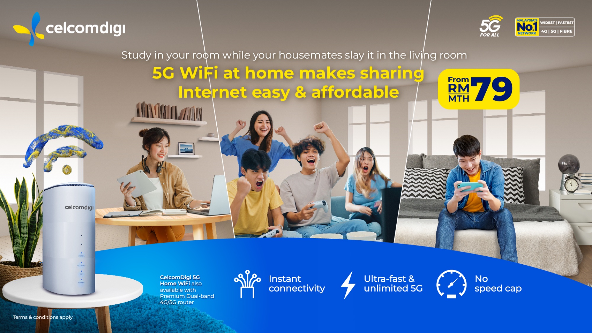 In summation, with the CelcomDigi 5G Home WiFi, you can get unlimited speed with a powerful and portable router and get additional cutting-edge devices at a fraction of the cost. With it, you can experience immersive home entertainment with ultra-fast, unlimited 5G Internet! CelcomDigi 5G Home WiFi ensures that you can share unforgettable moments together with your roomies. To get all these and more, sign up at the nearest Digi Store/Celcom bluecube.