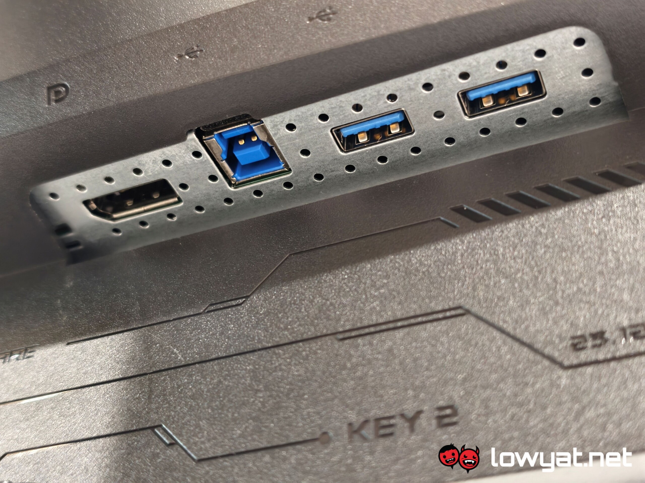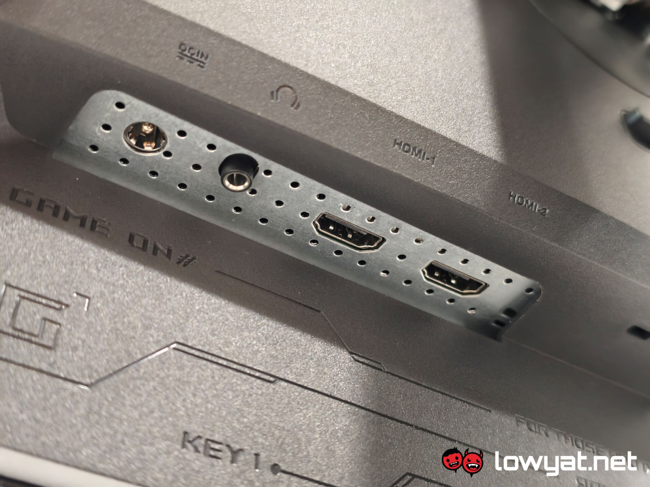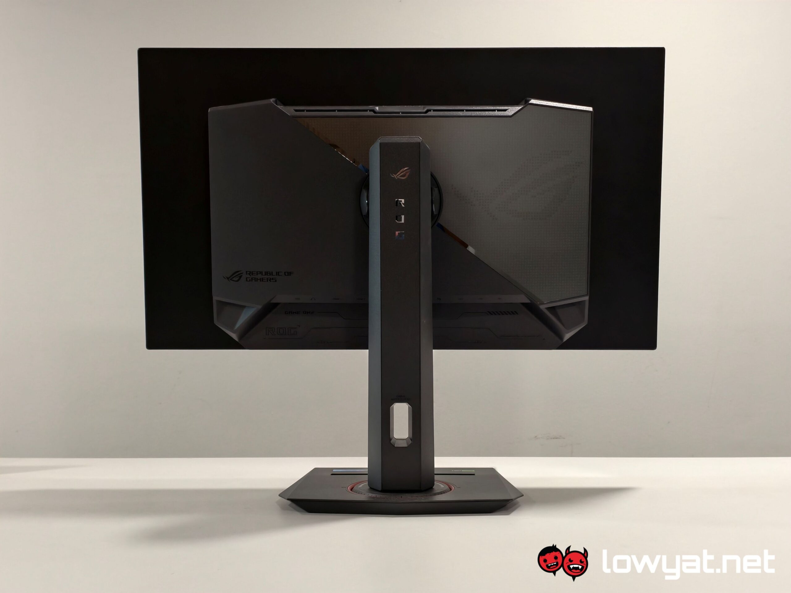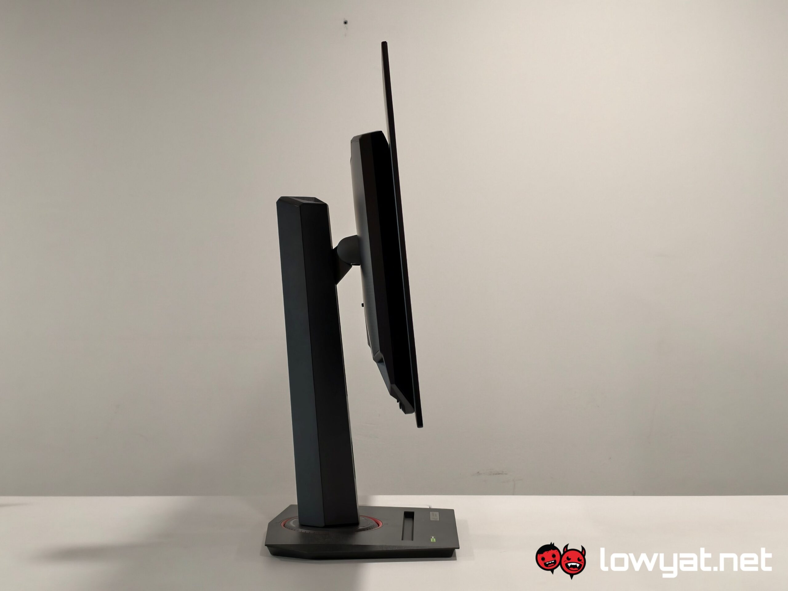I’ll come out and say it: I love that ASUS chose to give the XG27AQDMG a flat solid base, instead of the horrid three-prong leg design, and it even has a recess for your phone on it! It’s not rocket science: if you don’t plan on mounting your monitor on to an arm, having a flat base means that you can put things on top of it. No, really, it’s a lot more ergonomic than having three legs that are uneven in length just take up unnecessary space on the table.
