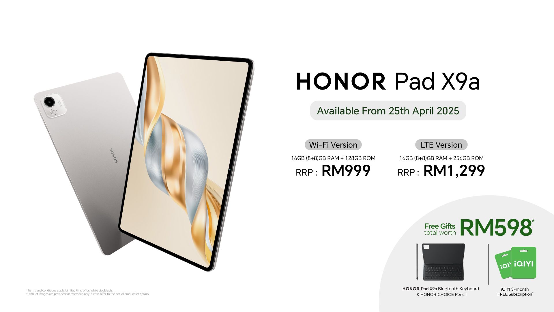Those who purchase the Pad X9a on the day will also receive free gifts worth RM598. These include a Bluetooth Keyboard cover and an Honor Choice Pencil, plus a 3-month iQIYI subscription, while stocks last. For more information, you can visit the official product page.