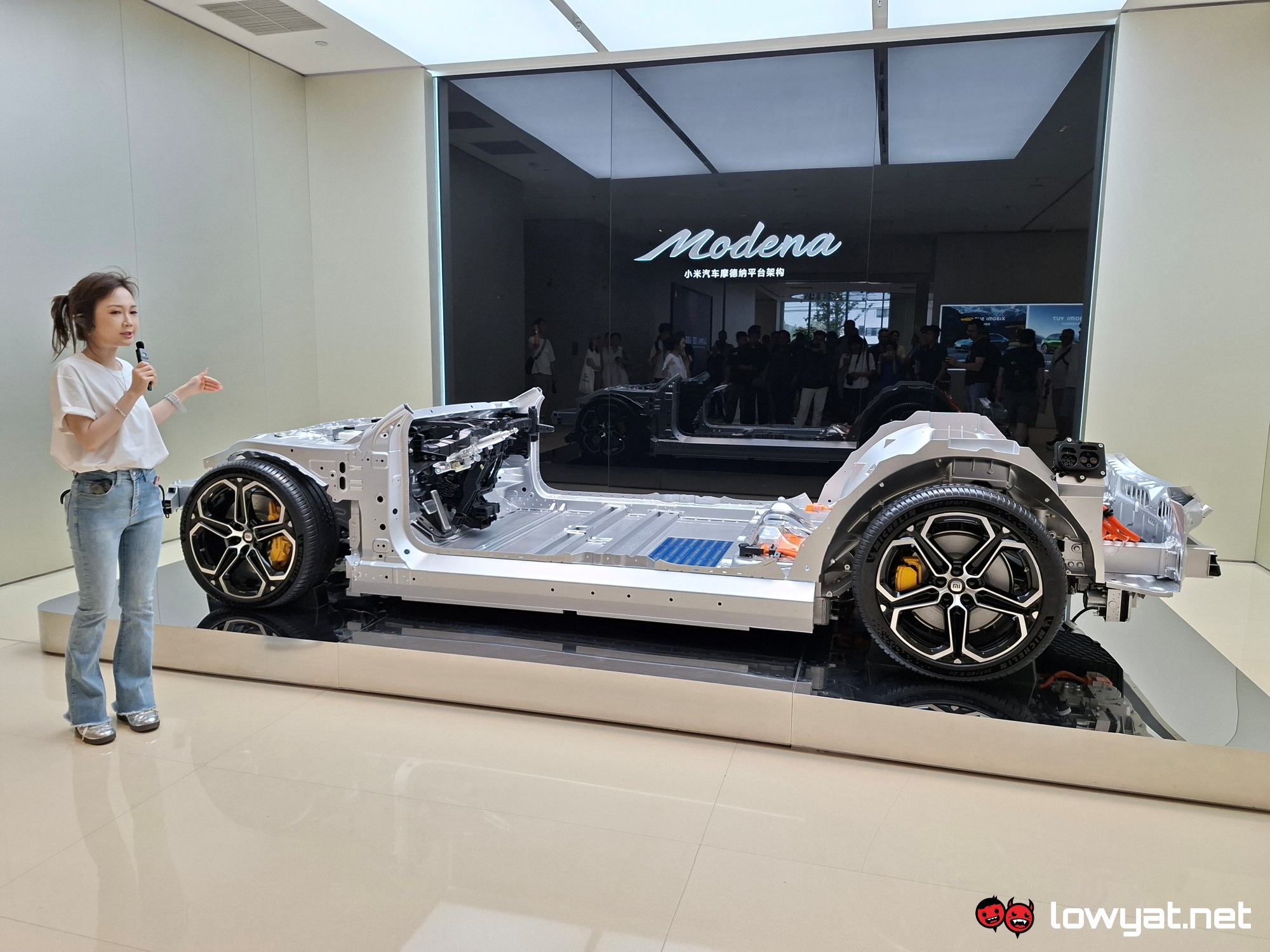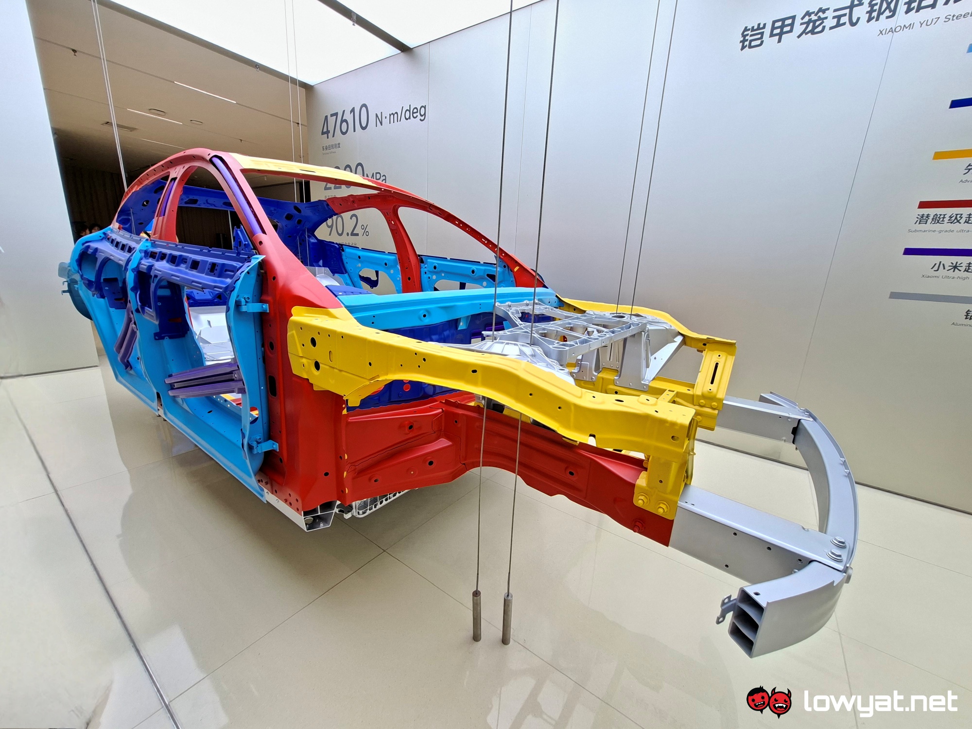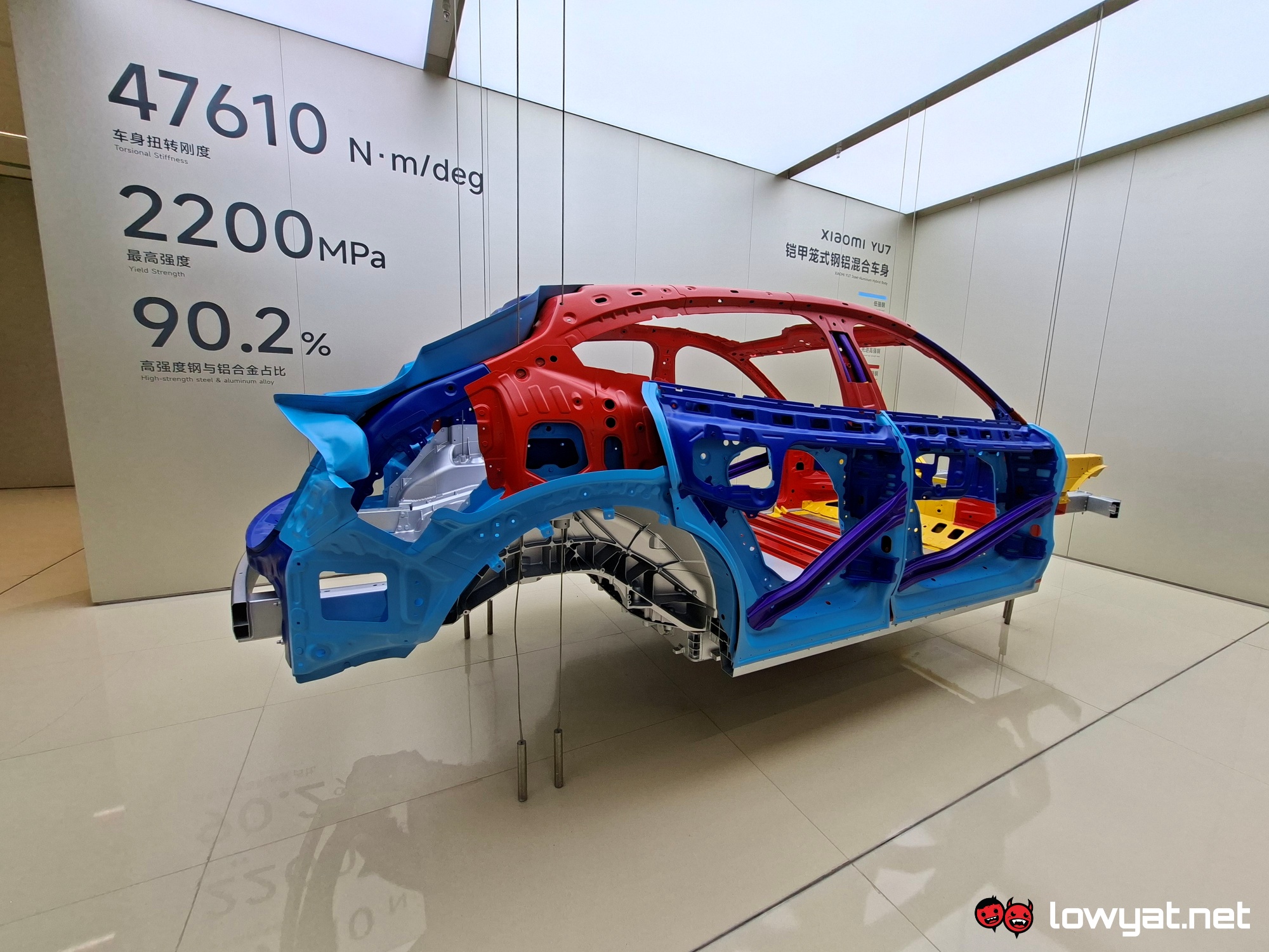 The first part of the tour brings us to the Experience Center, which houses the Technology Showroom. Here, we were given the rundown on the development of the brand’s EV models. The tour guide gave a quick rundown on some of the features of the Modena platform, which is the foundation for the brand’s vehicles. Also on display are the different engines used in the cars, as well as a colour-coded model of the YU7’s body structure highlighting the materials used.