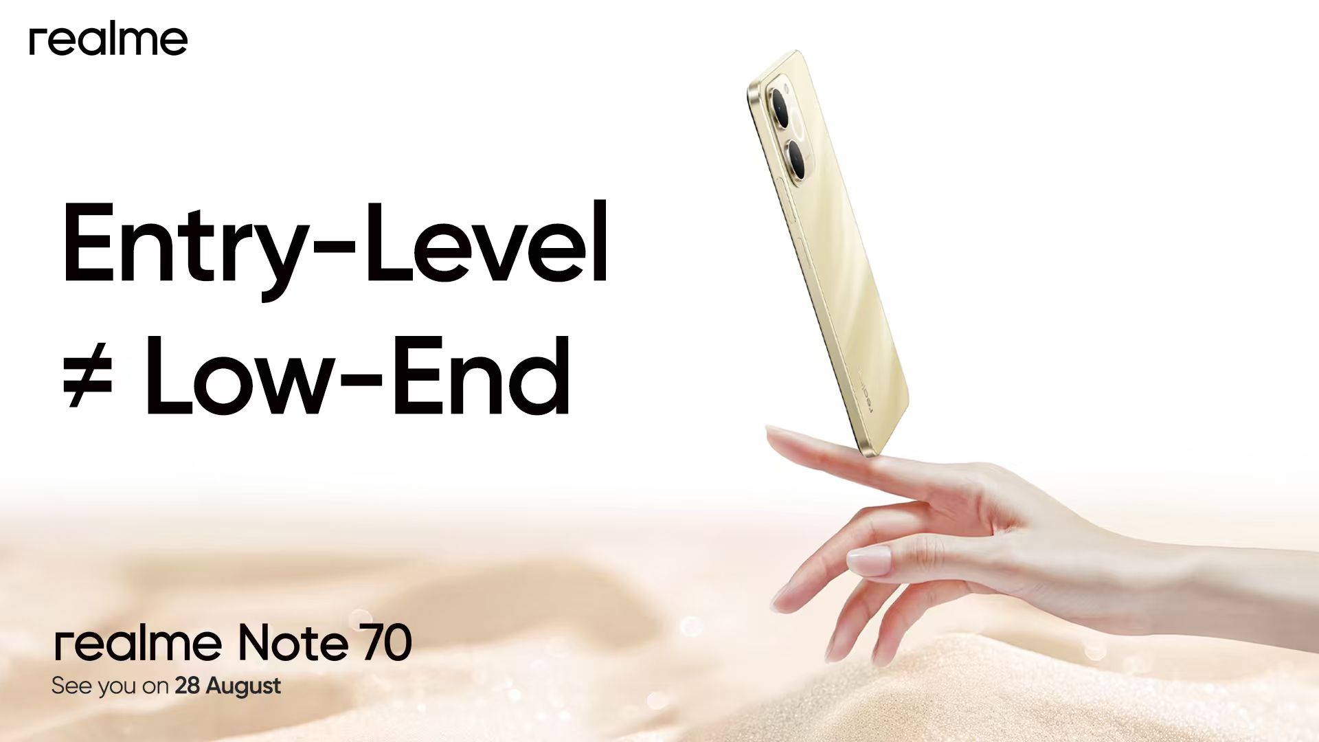 Smartphone brand realme has announced that it will be launching its Note 70 entry-level smartphone soon. It’s not exactly a yearly cycle, since the Note 60 launched pretty late last year. This new one launches on 28 August instead, according to the company.