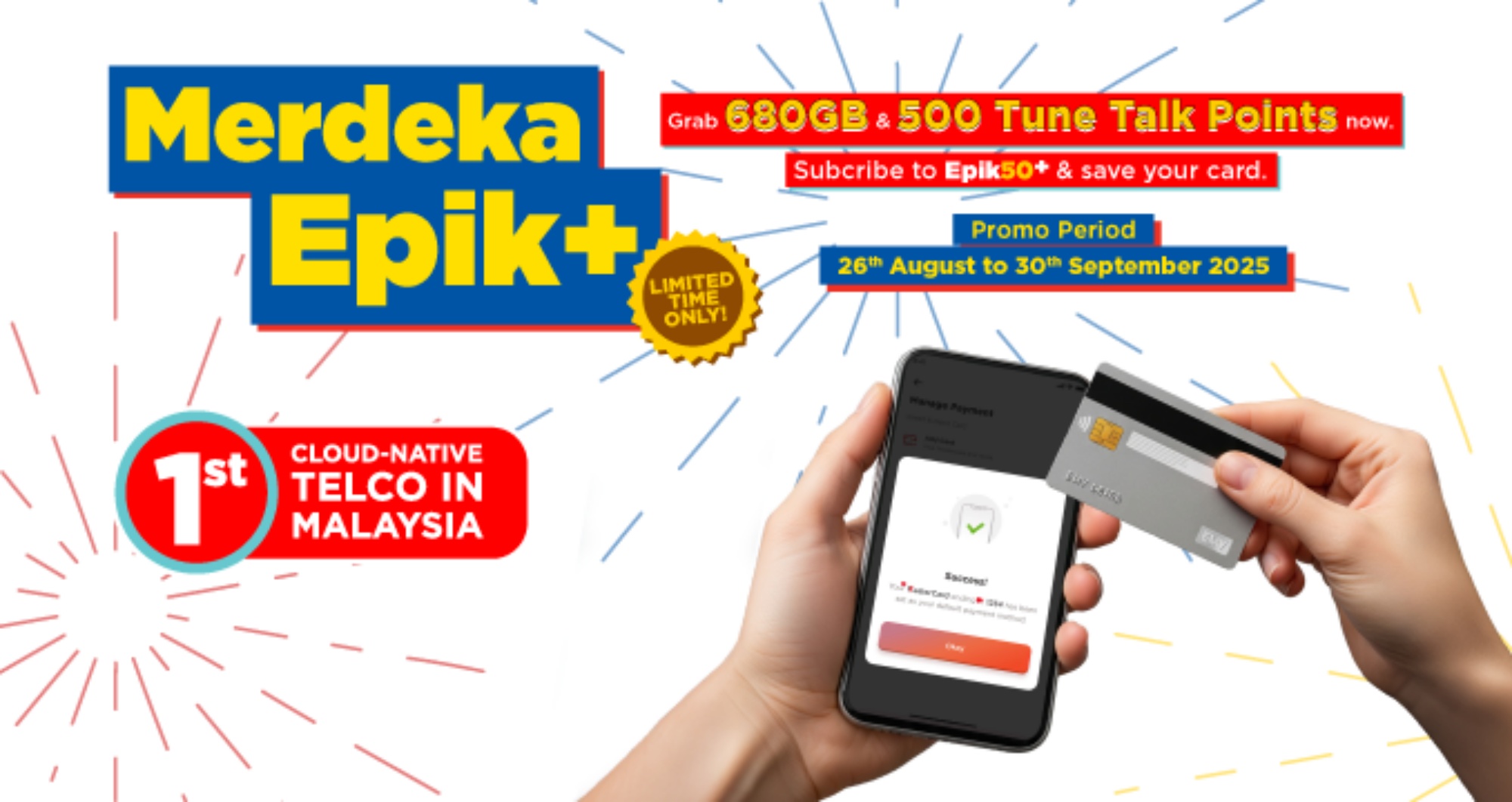The Merdeka Epik+ Promotion is open to both new and existing subscribers from 26 August to 30 September 2025. To redeem the bonus, users must subscribe or renew the Epik 50+ plan, save a credit or debit card in the Tune Talk app, and tap the campaign banner on the homepage. First-time card savers with auto-renewal enabled will also receive 500 Tune Talk Points, credited after 30 days.