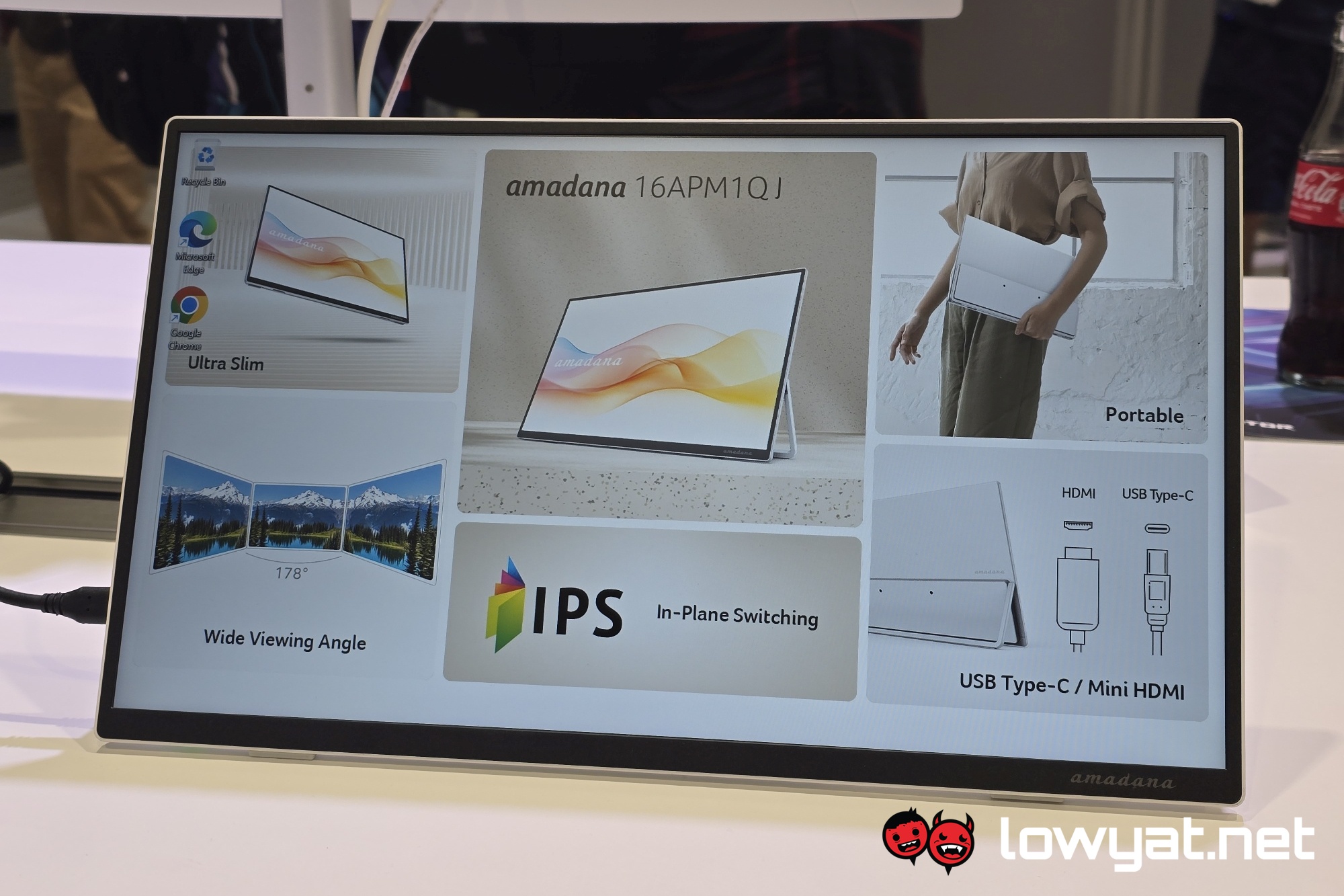With that in mind though, the name uses a rounded up number. This is because the amadana 16APM1QJ actually measures 15.6 inches across. The screen itself has a Full HD resolution, 60Hz refresh rate, 6ms GtG response time, a brightness of 250 nits, and HDR10 support. It has two internal 1W speakers, and for output it takes a mini-HDMI and two USB-C. Befitting its portable nature, it weighs in at 0.65kg, with a kick stand built in.