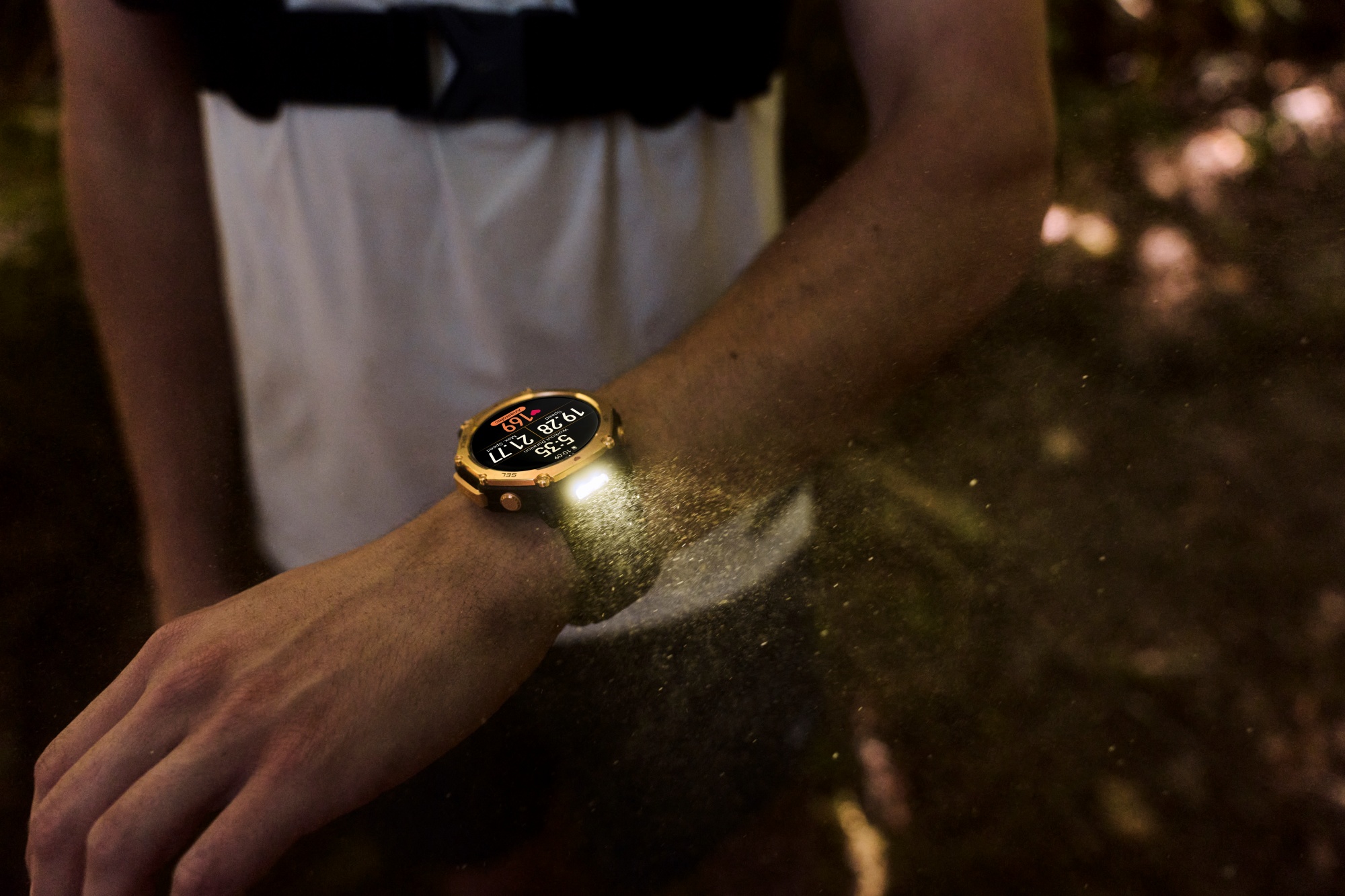To start off, the watch is available in 44mm and 48mm sizes. Both variants feature a sapphire glass screen, as well as a titanium alloy bezel. The smaller model sports a 1.32-inch AMOLED display with a peak brightness of 3,000 nits. The bigger version also gets the same display, but it measures 1.5 inches.
