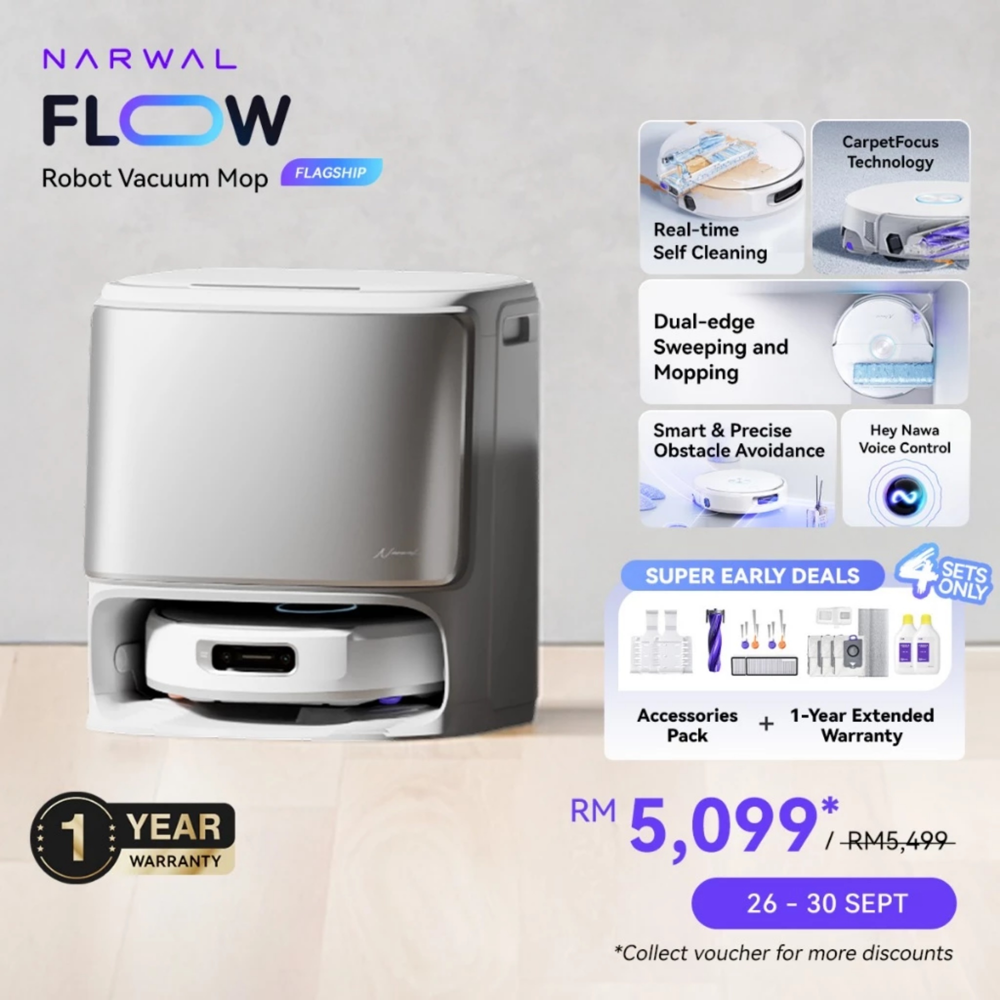 These products are available for purchase online from the brand’s official Shopee page, as well as Aihome outlets at Sunway Velocity, Plaza Low Yat, and IOI City Mall. The Narwal S30 retails for RM1,699, while the Freo Flow and Freo X10 Pro are priced at RM5,499 and RM2,699 respectively.