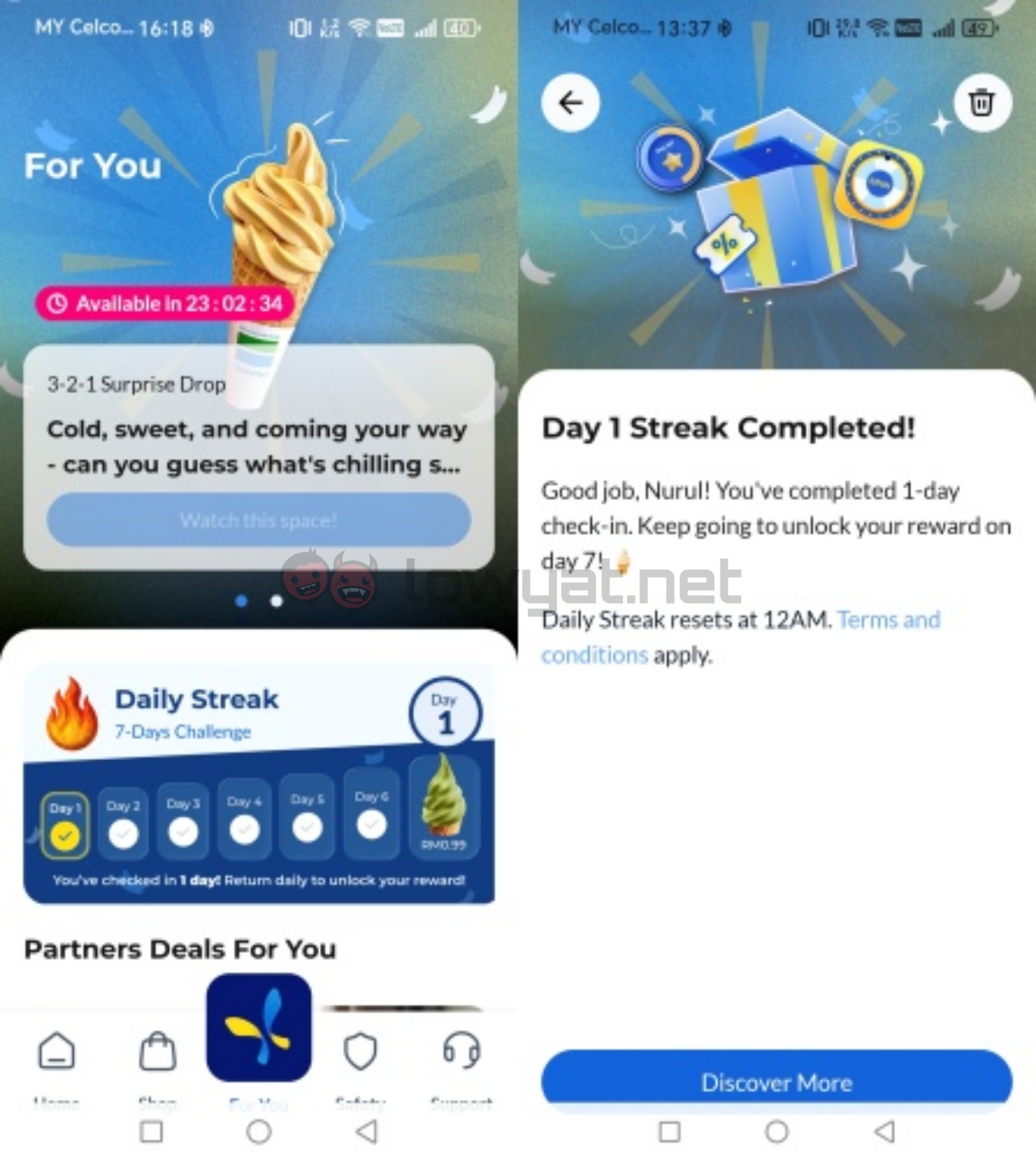 In addition to the AI chatbot, the CelcomDigi app introduces a rewards system. You can find it in the For You section. Currently, there’s a daily streak “challenge” that will reward you for logging into the app for seven days straight. Other deals and promotions are listed on this page as well. According to the telco, the app will learn your preferences and display the appropriate deals here. Of course, it’s still too early to see these personalised offers yet.