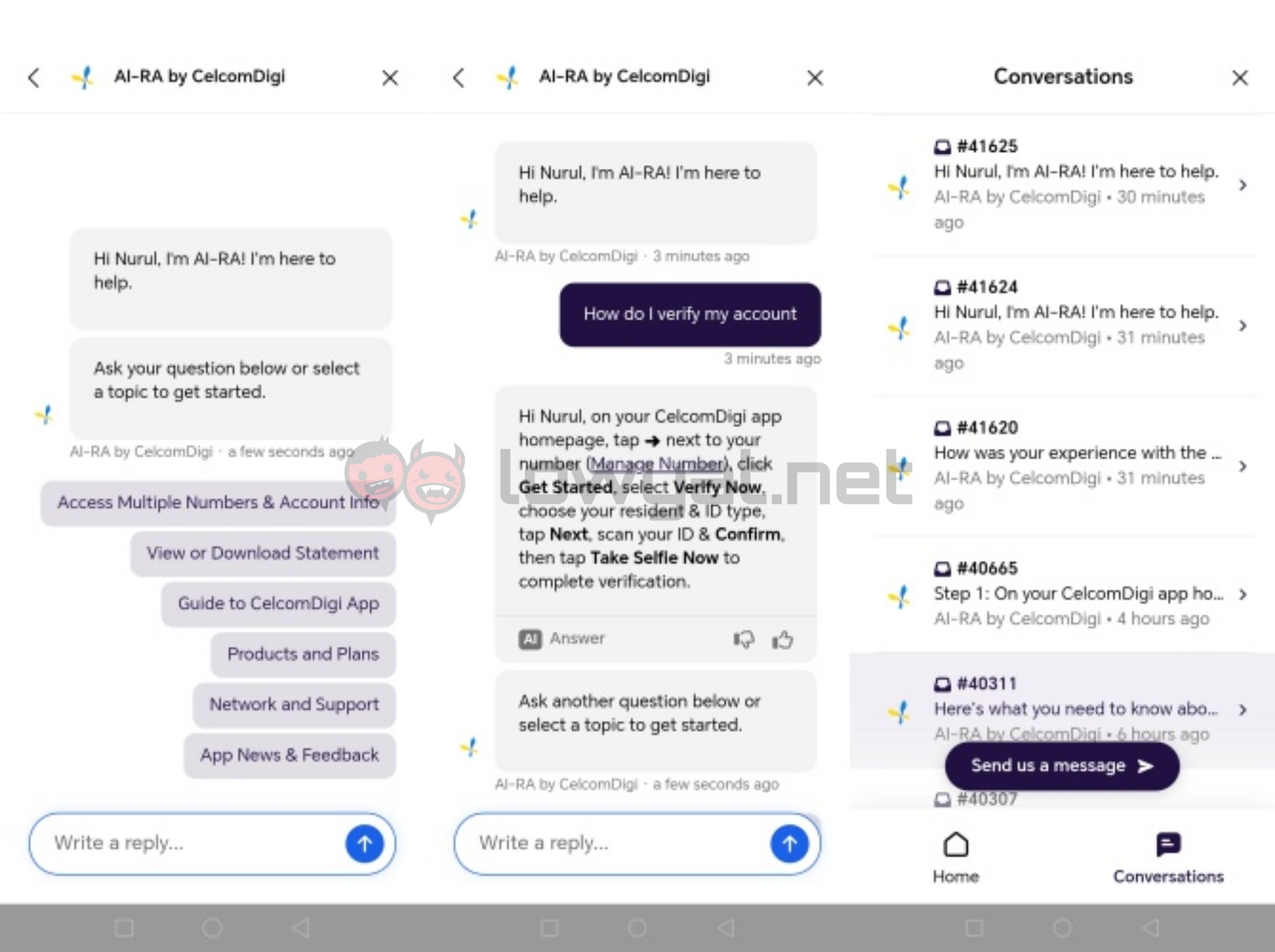 It seems no modern platform is complete without an AI chatbot, so naturally, CelcomDigi has included one here as well. Called AI-RA, the bot serves to answer the user’s questions. As with any other chatbot, you will be greeted with some suggested topics, including a guide for the app itself. You can also access past chats, although this is not something that’s immediately obvious. The “Ask AI-RA” buttons immediately start a new chat with the bot, and you can only see your history after exiting the chat.