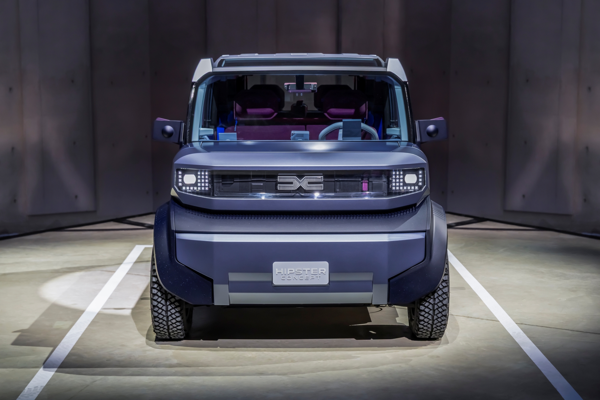 The design team has added some flair with a full-width LED light bar that integrates square-shaped headlights at each end, featuring a pixel-like appearance. It also comes with a front bumper that has angular contours, further adding a rugged look to the Hipster.