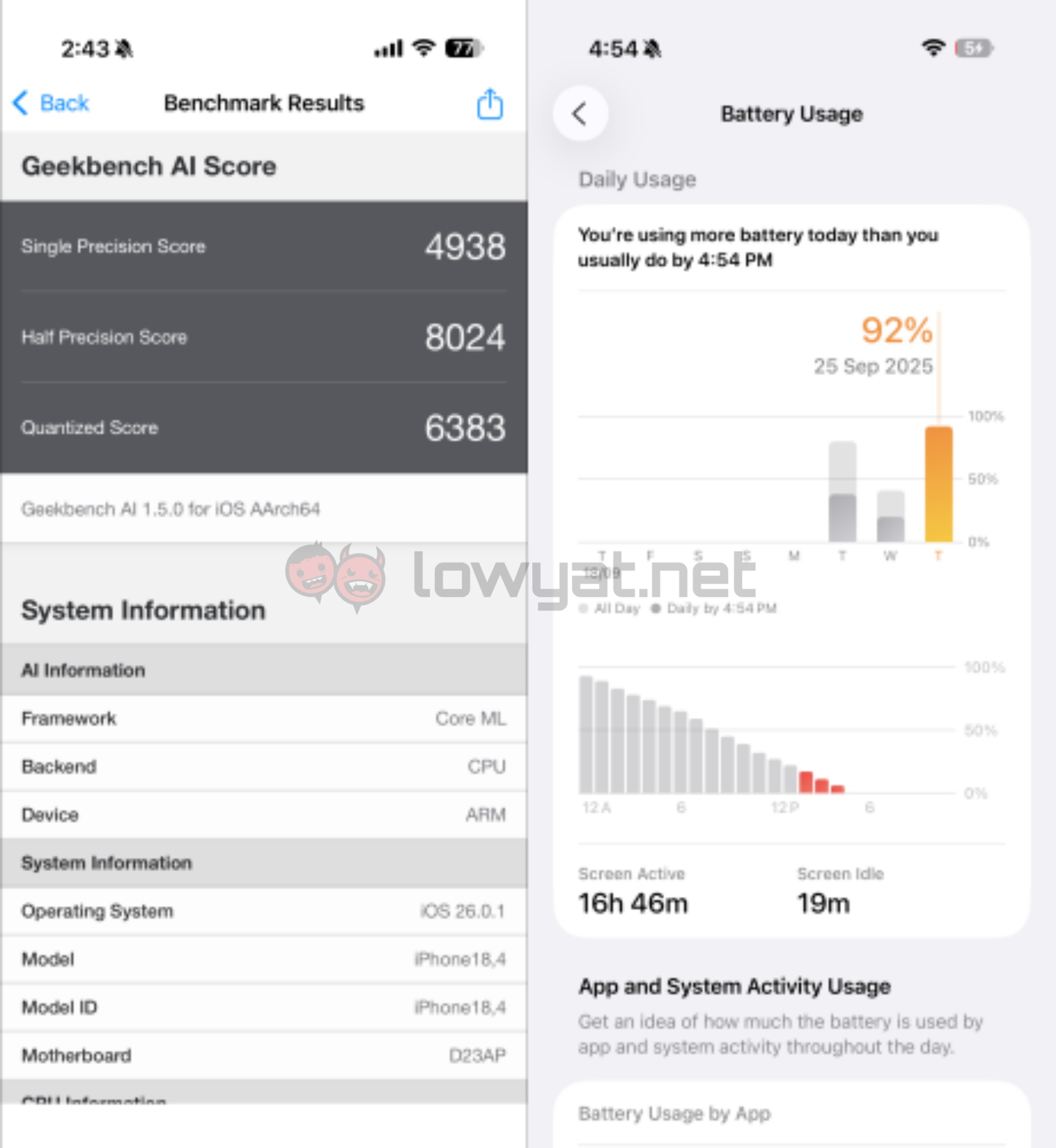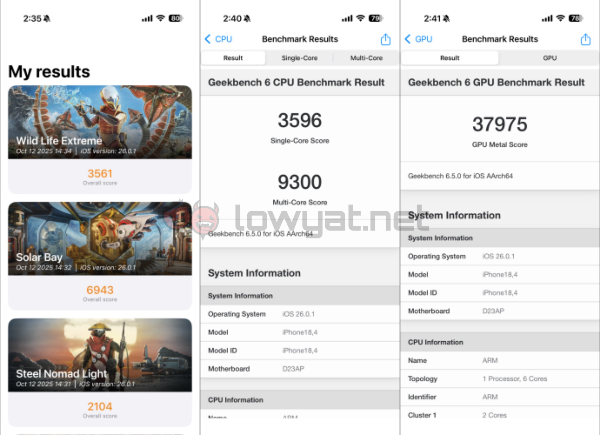 The iPhone Air packs the A19 Pro chip, but it’s not exactly the same as the one equipped on the iPhone 17 Pro and Pro Max. These beefier models feature a 6-core GPU, while the Air has a 5-core version. In theory, one can expect the phone to perform somewhere between the base iPhone 17 and the Pro variants. On its own, the device delivers some impressive results in terms of raw numbers.