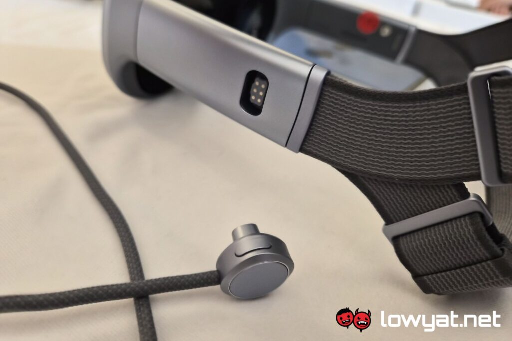 You can naturally remove the band, but what is not shown in the official images is that removing the bit on the right exposes a USB-C port. The employee tells me that this is used to transfer files into the internal storage of the MR headset to be viewed through it. Though said employee did not share the storage capacity within.