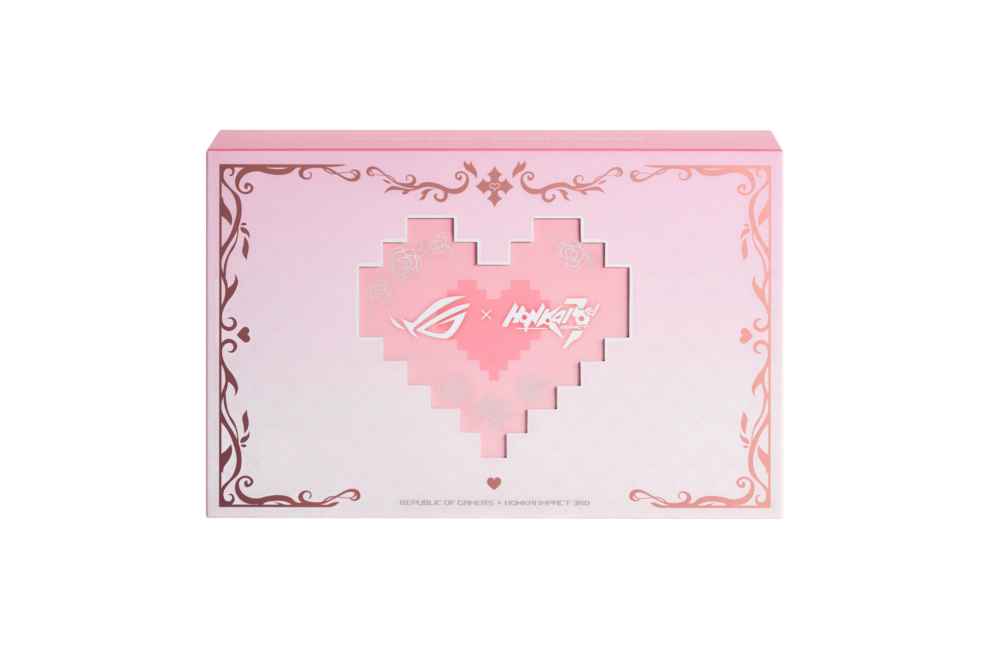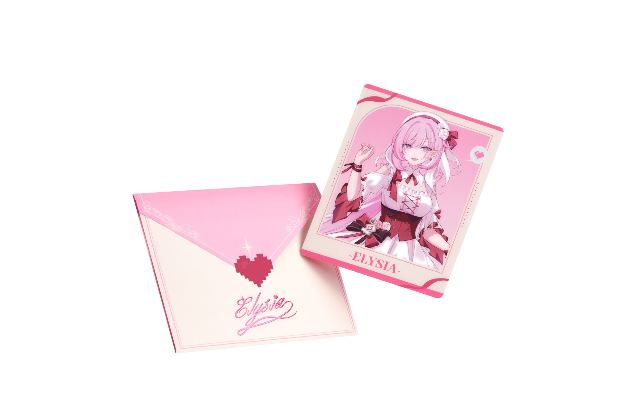 As the name suggests, this is a gift box focused on the playable character Elysia, with a design based on her new ROG crossover exclusive outfit. The collection carries a Romantic Pink theme with letter-inspired aesthetics, and features a pastel pink colour scheme.