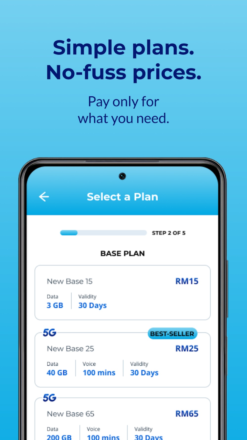 Spark offers three fixed plans, Mini, Standard and Plus, which users can manage entirely through its app. It prices the Mini plan at RM15 per month for 3GB of 4G data, while the Standard plan costs RM25 and includes 40GB of 4G/5G data with 100 voice minutes. The top-tier Plus plan provides 200GB of 4G/5G data and 100 voice minutes for RM65. Each plan stays valid for 30 days and renews automatically through the user’s linked payment method.