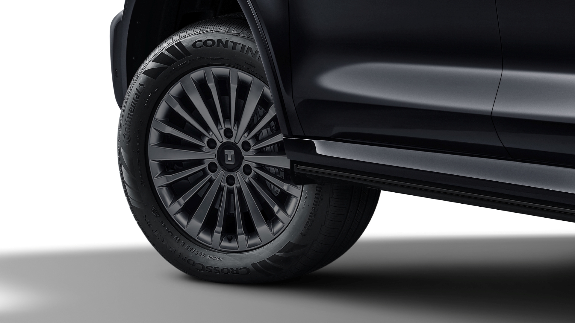 Complementing these are a black front bumper garnish, black front grille, black window trim, black rear bumper protector, and sleek 20-inch black alloy wheels. The SUV also comes equipped with black electric side steps, black roof rails, and black emblems, completing its striking, all-black appearance.