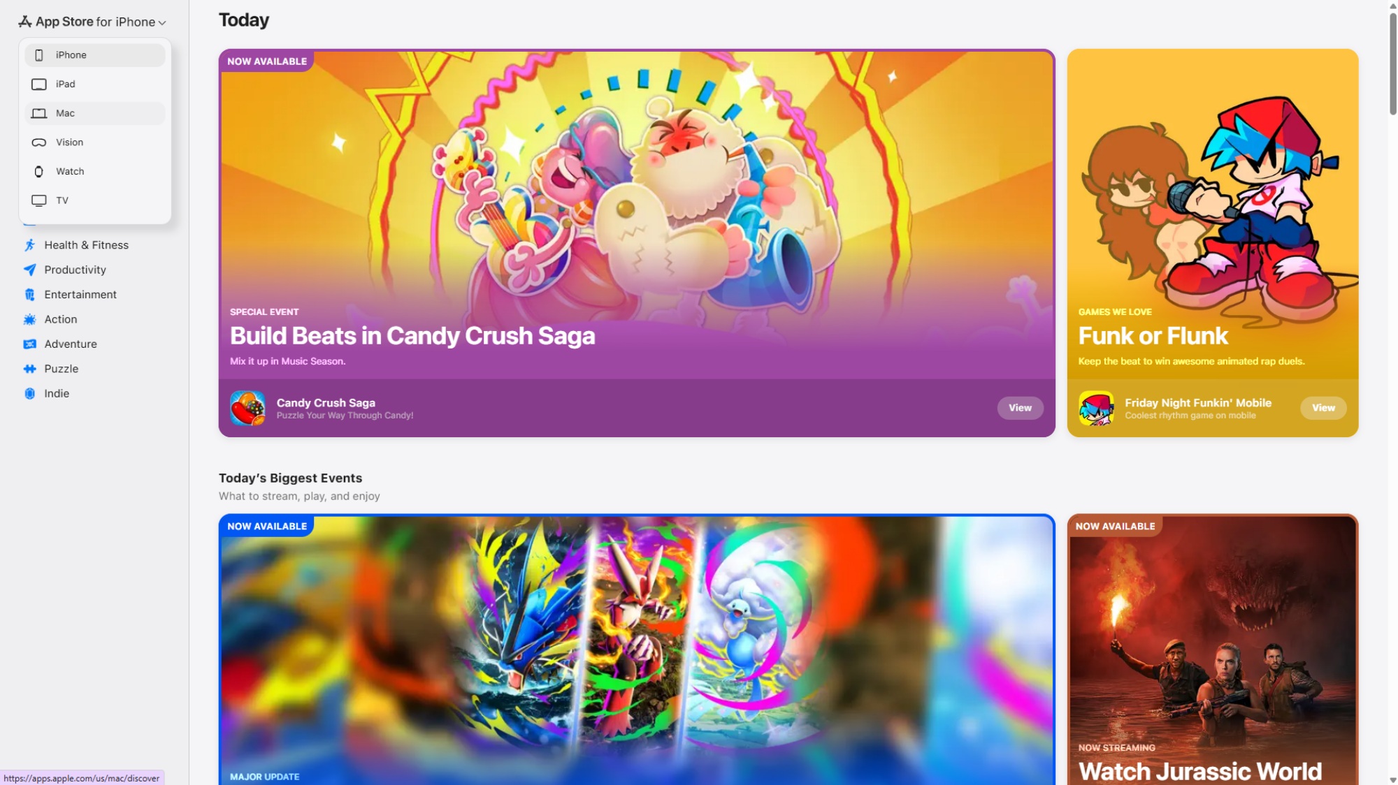 After 17 years, Apple has finally developed a browser-based version of the App Store. While it delivers the App Store experience for PC users, the website also includes dedicated app pages for iPhone, iPad, Mac, Vision, and TV, tucked away in a drop-down menu in the upper-left corner of the page.