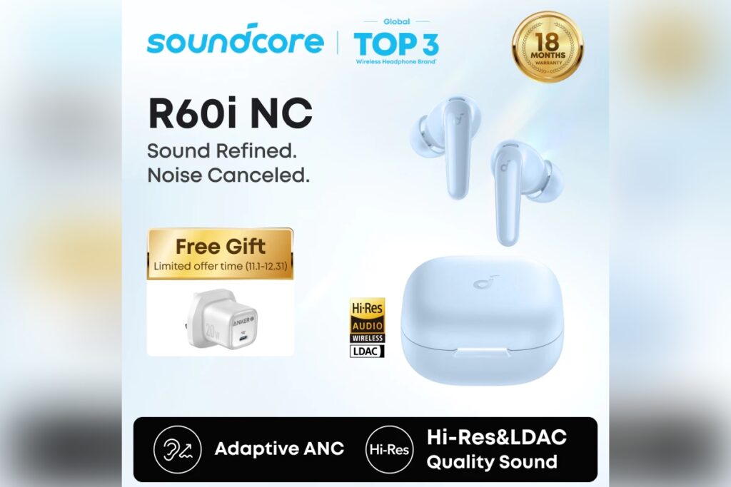 Anker’s audio-focused subsidiary Soundcore has announced a addition to its catalogue called the R60i NC. Succeeding the R50i NC from last year, this is perhaps a more meaningful upgrade than between the two prior generations. It’s also among the cheapest options out there of you want TWS buds with LDAC codec support.
