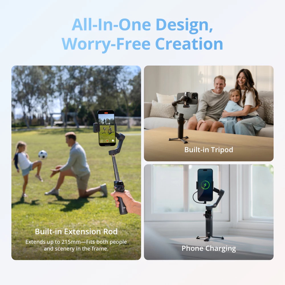Physically, DJI has redesigned the magnetic clamp to better handle larger and heavier smartphones, including those with protruding camera modules, and it now works with Apple’s MagSafe mounts. The gimbal offers up to 10 hours of battery life, can serve as a power bank via USB-C, and supports DJI’s latest microphones, including the Mic 3, Mic Mini, and Mic series.