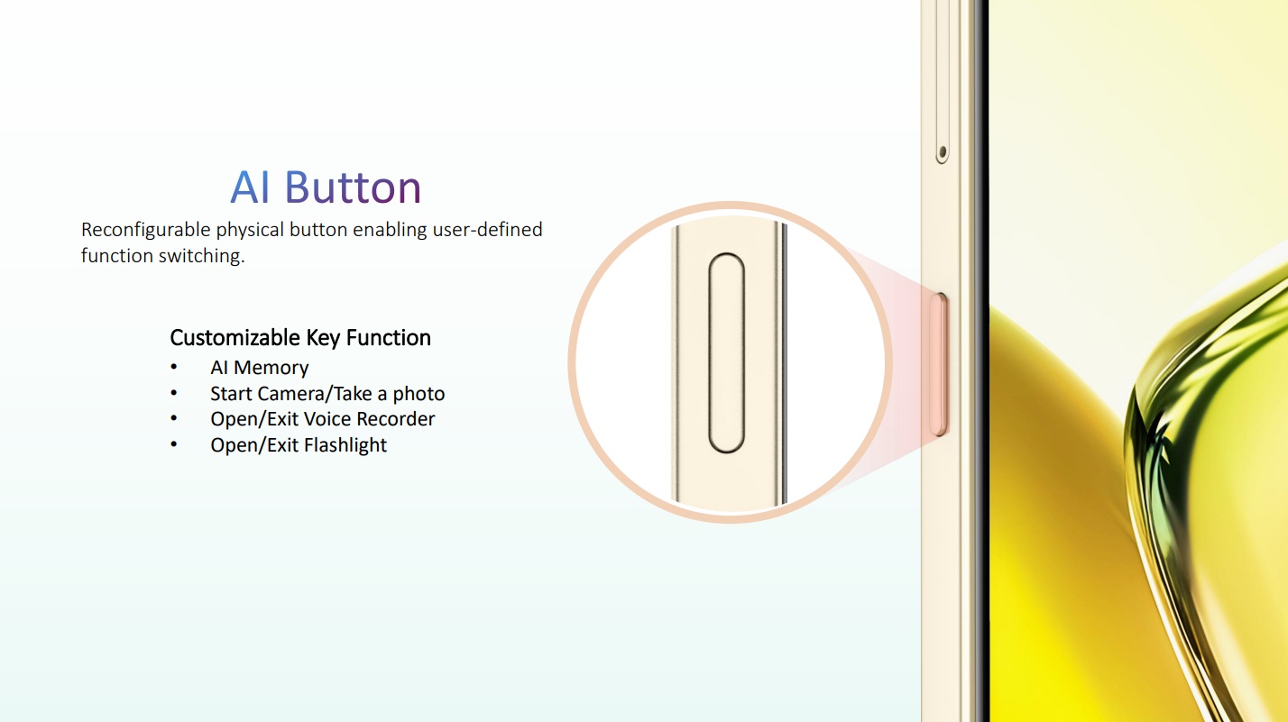 Starting with the display, the nubia V80 Design is sporting a 6.75-inch 1940 x 900 High-Resolution Display 317 PPi, with a refresh rate of 120Hz, and a peak brightness of 1,000 nits. The phone naturally has your typical volume rocker and power button on the right side of the device and a dedicated AI button on the left that users can customise. The device also has an IP65 dust and water resistance rating.