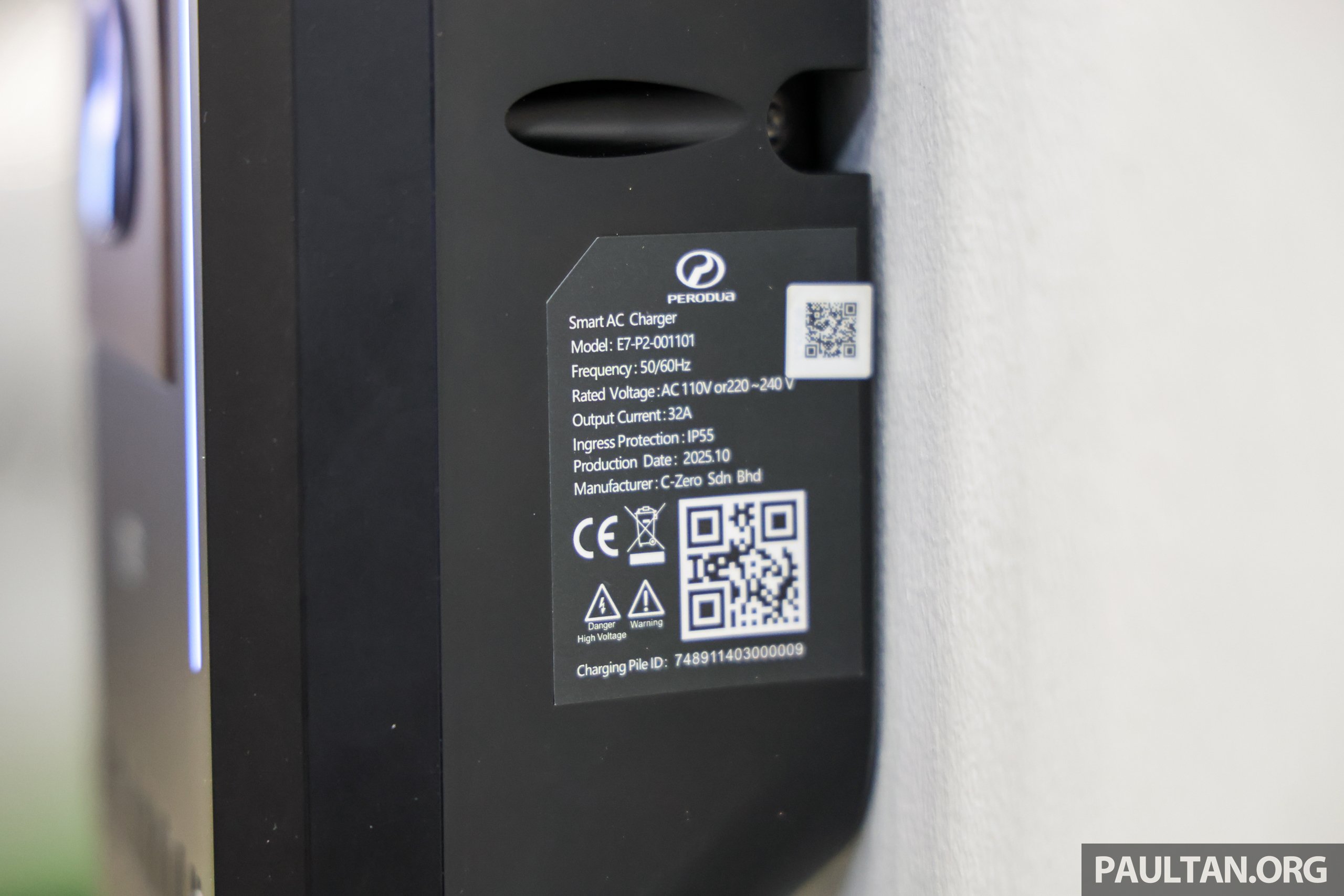 Just below the camera is a vertical light bar that is expected to glow green when the charger is in use. It also comes with an illuminated logo and customizable ambient lighting. Built locally, the IP55-rated wallbox supports multi-user access via password or card, with the card tap area located between the two Perodua logos.