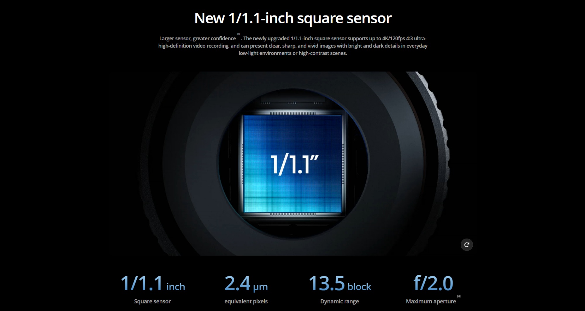 As a refresher, the Osmo Action 6 features a brand new 1/1.1-inch CMOS sensor, which boasts a 13.5 EV dynamic range. It also has a 155° field of view and an f/2.0~f/4.0 variable aperture. The camera records up to 4K at 60fps (at a 1:1 aspect ratio) or 4K at 120fps (at a 16:9 aspect ratio). Though it can only create 38MP photos.