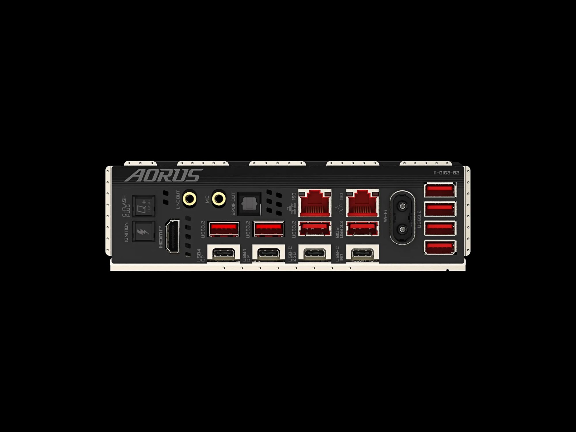 Other physical features include a DDR Wind Blade XTREME fan that sits on top of the memory slots, designed to streamline airflow through the DDR5 memory modules. Additionally, there’s the M.2 Thermal Guard Xtreme cooling solution for the SSDs, featuring built-in 5mm fans and heatsinks. Lastly, the entire motherboard is fitted with large fin arrays. Heck, even the rear IO ports have small vents cut into its shield.