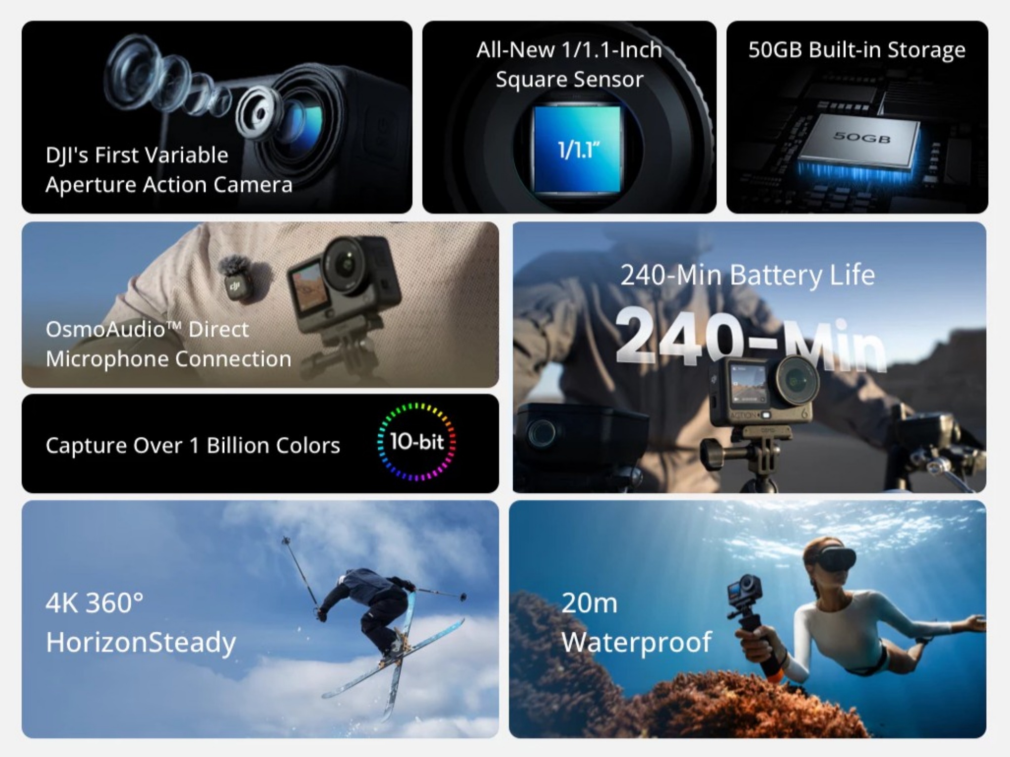 In Malaysia, the company is offering two combo packages for the DJI Osmo Action 6: the Standard Combo, and the Adventure Combo. The former is priced at RM2,079, and includes the camera, a 1,950mAh battery, plus some basic accessories.