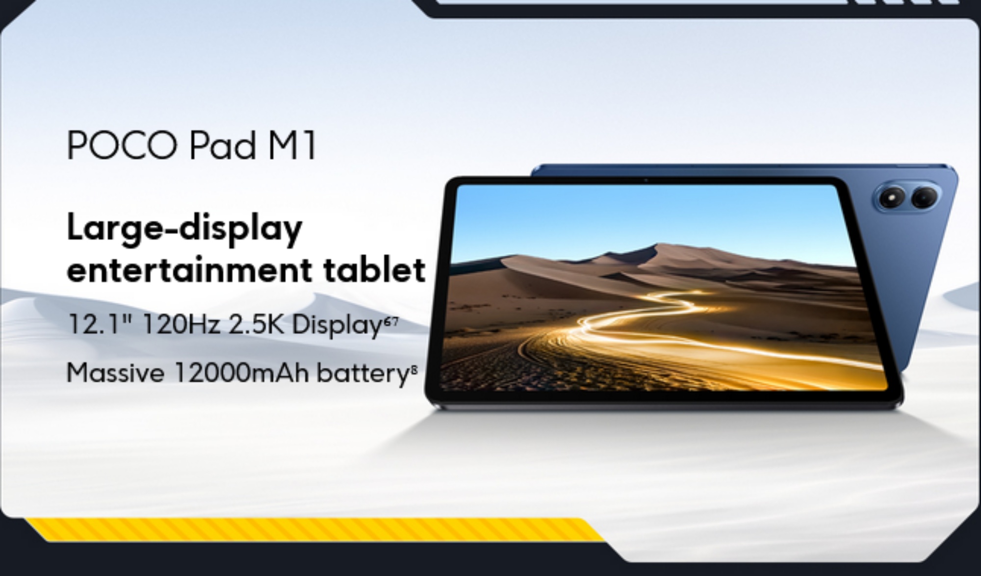The POCO Pad M1 will feature a large 12.1-inch display with a 2K resolution and a 120Hz refresh rate. Under the hood, it will pack a 12,000mAh battery.