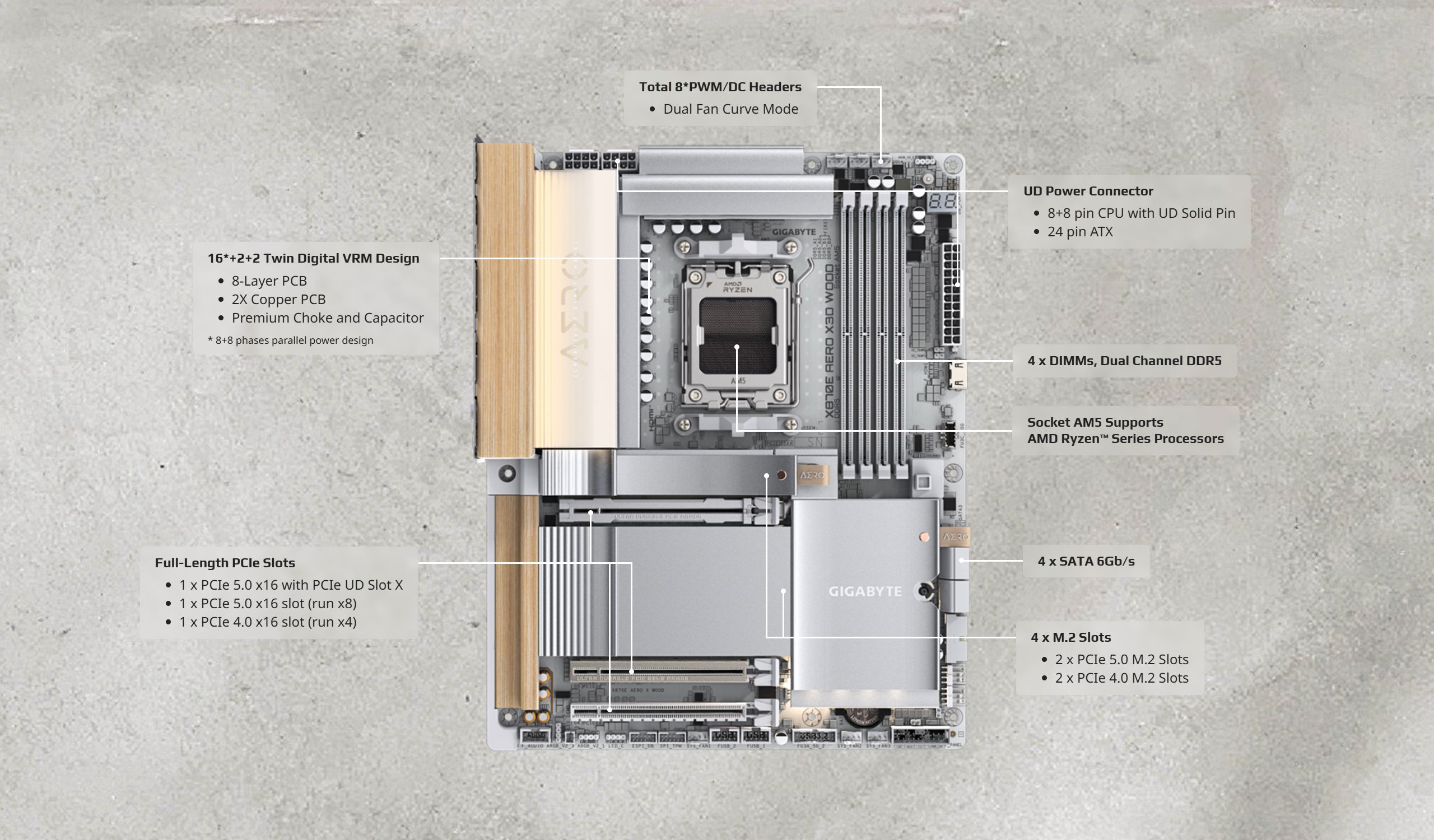 Gigabyte says that the design of the X3D Wood is inspired by the “Zain” aesthetic, which is a form of minimalism. ” X870E AERO X3D WOOD brings comfort and harmony to your space through thoughtful design that honors the quiet presence of natural materials. Every detail has been meticulously considered, from the premium leather pull tab—a tactile delight that brings luxurious warmth to your fingertips—to the natural wood aesthetic that evokes the warmth and authenticity of home.”