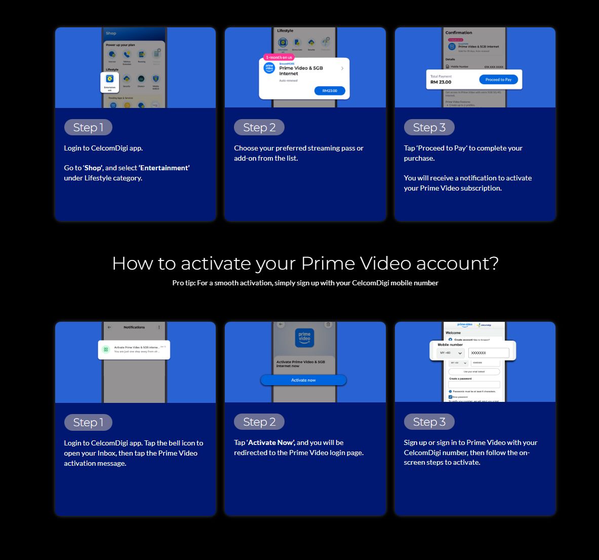 If you already have a Prime Video account, you can use that to log in to the service or simply sign in with your CelcomDigi number. From there, simply follow the instructions to get streaming.