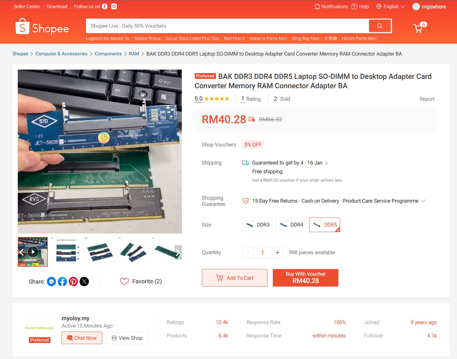 For the record, laptop RAM adapters aren’t terribly expensive either. We found a couple of sellers on both Lazada and Shopee selling these components, with DDR4 adapters typically priced at around RM25, while the DDR5 adapters averaged RM40. The application of this is also pretty self-explanatory: you look for and purchase laptop RAM of your choice, install it into the adapter, then proceed to plug said adapter into the memory slots of your desktop PC’s motherboard.