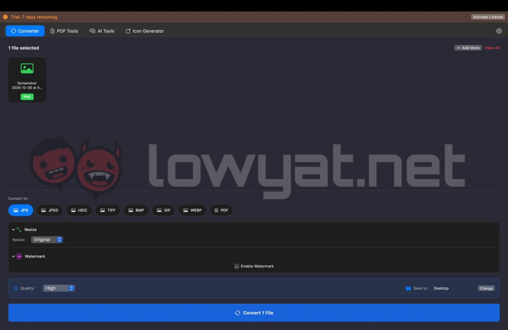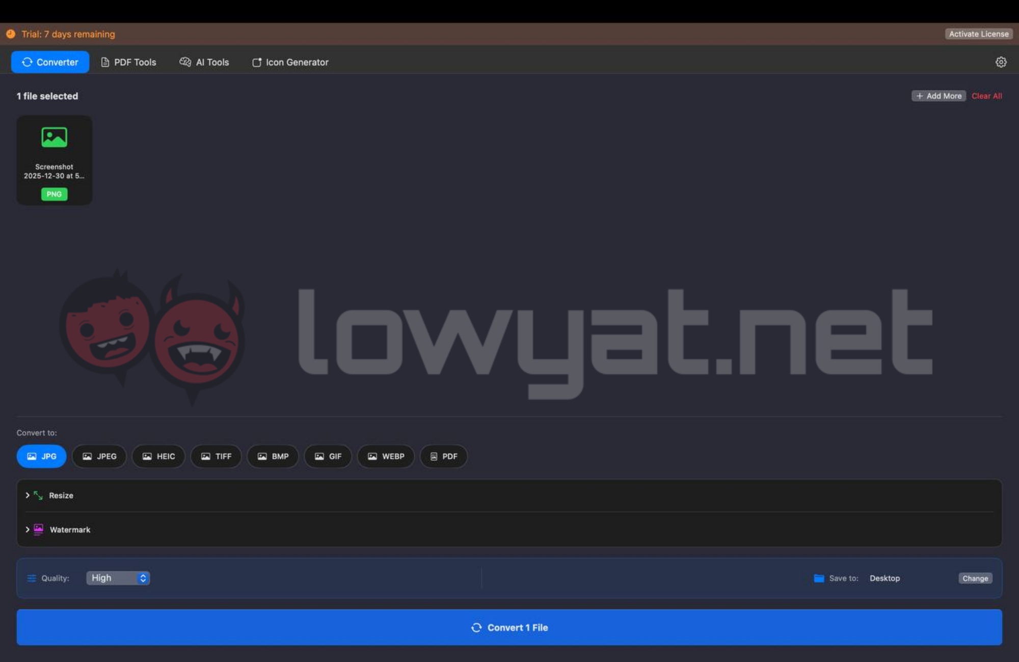 The app operates like any other converter: simply upload files and convert them to another format. If the file is an image, the software also lets users resize it and add watermarks.