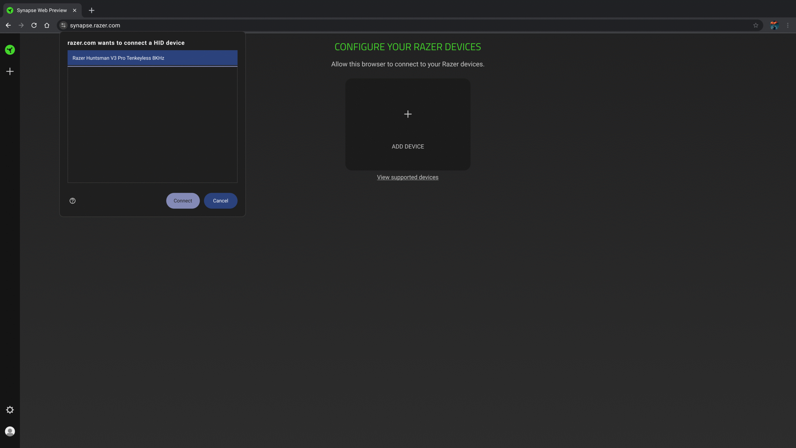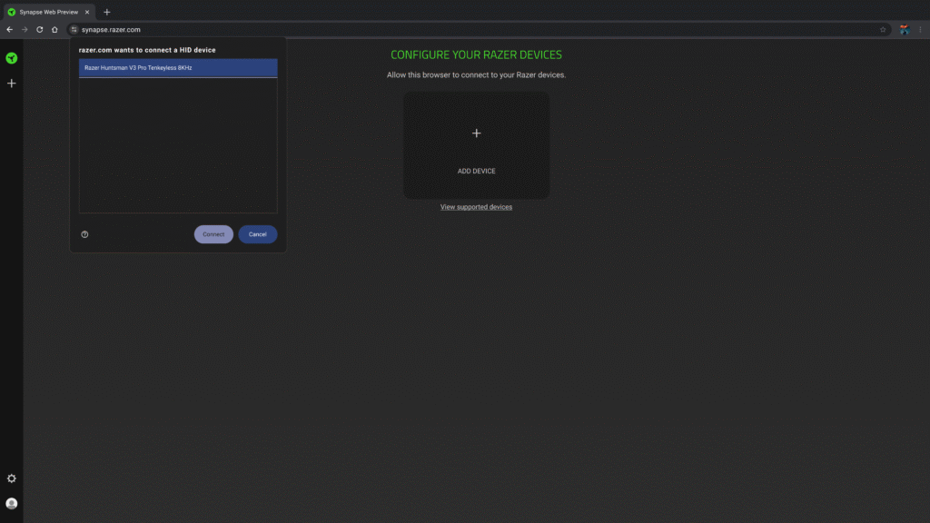 As the Synapse Web is still in its beta phase, Razer isn’t opening the app up to all its products just yet. For now, the gaming brand says that its app will only support its Huntsman V3 gaming keyboard line. That list includes the Huntsman V3 Pro 8KHz, Huntsman V3 Pro TKL 8KHz, and Huntsman V3 Pro Mini.