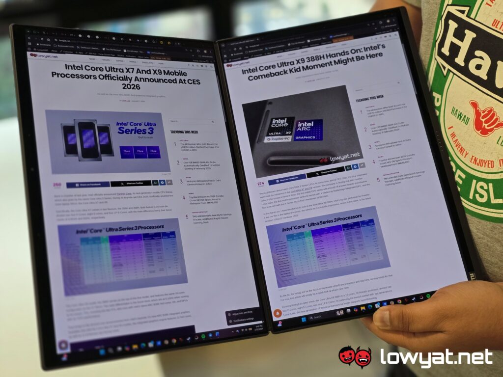 As I mentioned, this year’s Zenbook DUO is one of the first laptops not just to ship out with Intel’s Panther Lake, Core Ultra 3 Series mobile CPUs, but also some changes to its chassis and physical form.