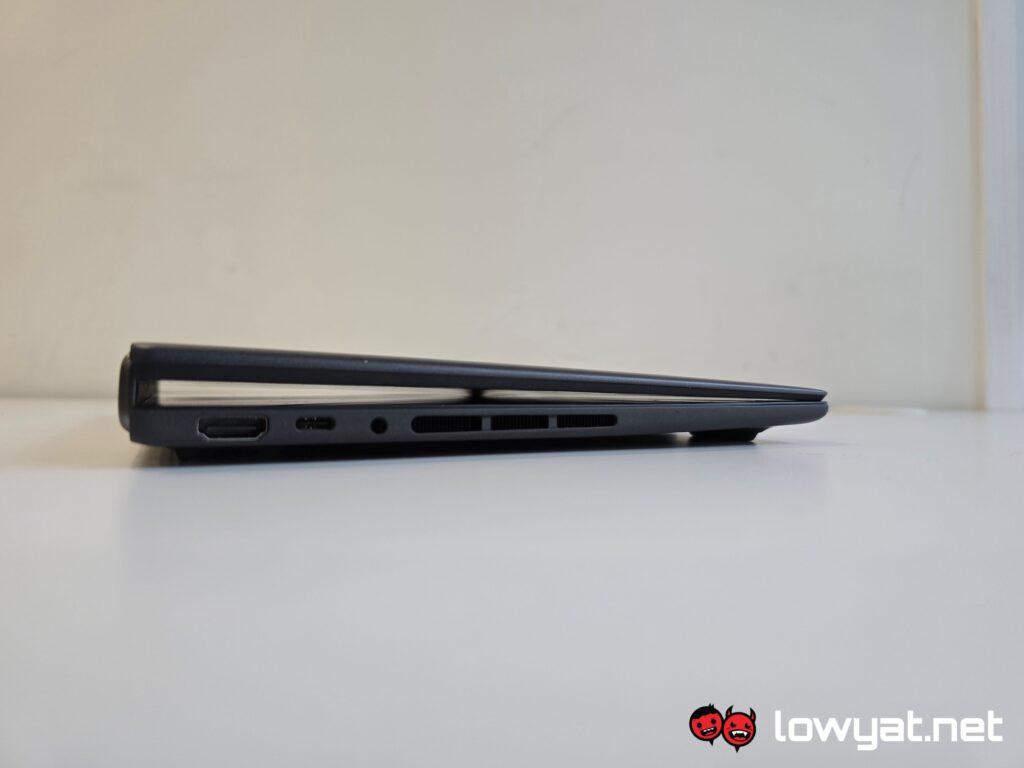 Then there is the other trade-off that often plagues thin-and-light machines such as these: the lack of ports. You get two Thunderbolt 4 ports, one USB-A port, and an HDMI port. Subtract one Thunderbolt 4 port for charging your PC, and that effectively leaves you with one port that you’re most certainly going to stick an I/O port extender into, especially if you’re someone like me who has a pair of USB-A powered headphones.