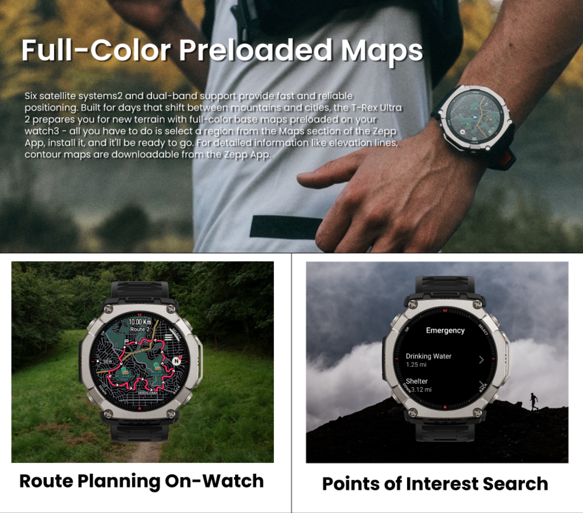 Aside from that, it gets the usual fare of health and fitness trackers, including heart rate, blood oxygen, stress levels, and sleep monitoring. Additionally, it features over 180 sports modes. Meanwhile, dual-band GPS and six satellite systems offer precise positioning. This is further enhanced by a suite of navigation tools like full-colour preloaded maps. Wearers can also get detailed information such as elevation lines and contour maps from the Zepp app. Other capabilities include offline route planning up to 100km, points of interest search, checkpoint alerts, and automatic rerouting.