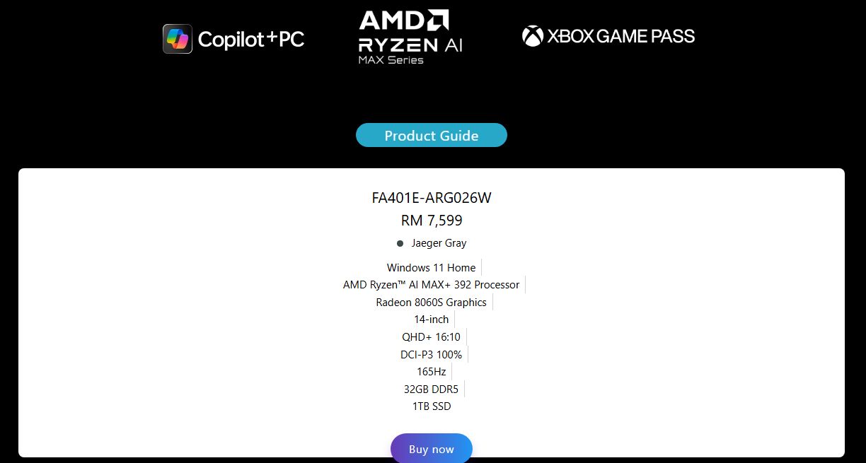 As a quick primer, the Ryzen AI Max+ 392 was announced first, followed by ASUS’ own reveal of the refreshed TUF Gaming A14. As a quick primer, the APU has12 cores – four less than the 395 – and a slower boost clock at 5GHz. And when we say slower, we mean by 100MHz, which shouldn’t really detract from its overall performance. Just an assumption, but when we get the laptop in our labs to test, we’ll find out how much more or less it performs, compared to the 395.