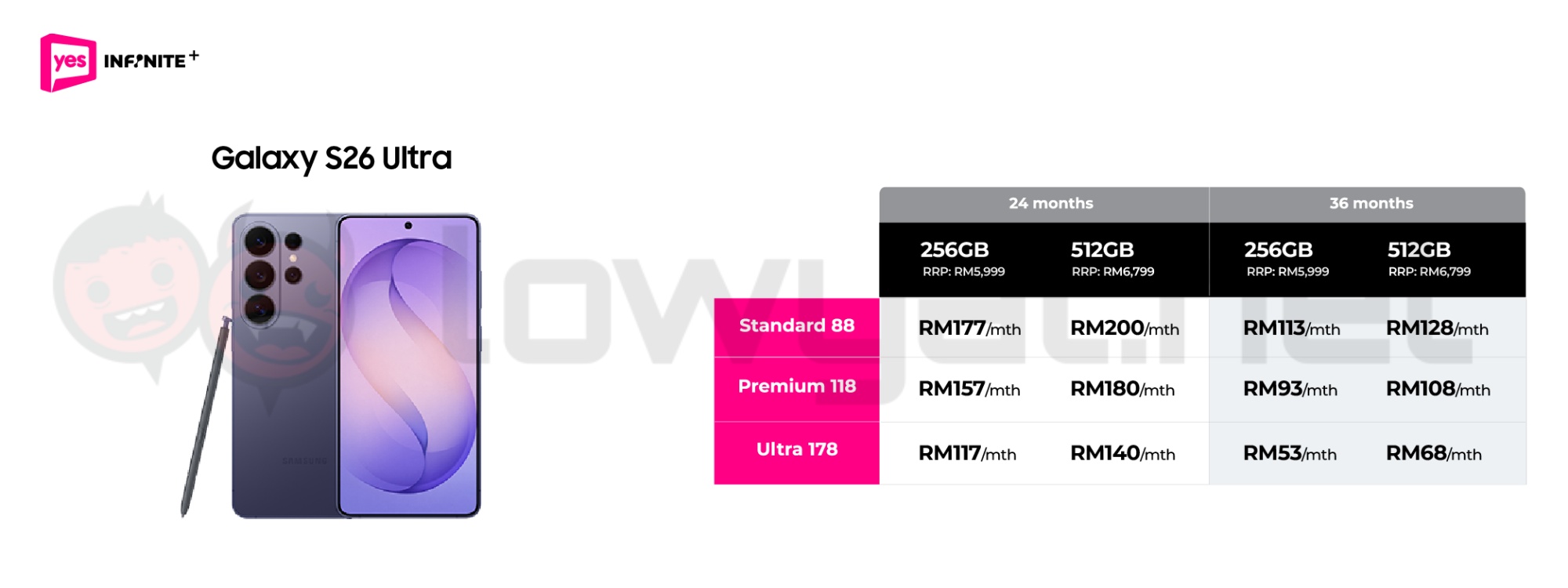 Yes 5G is currently offering pre-orders for Samsung’s latest flagship line-up via its Infinite+ plan with either a 36-month or 24-month contract, as well as the Yes 5G Advanced prepaid plan. Opting for Infinite+ provides the lowest monthly instalments across all three models, along with RM0 upfront payment. Customers can also choose between the Basic 58, Standard 88, Premium 118, or Ultra 178 postpaid tiers, all of which offer uncapped 5G data and speeds without a fair usage policy (FUP).