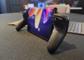 The outlet also confirms that the controllers are usable on all four sides of the foldable display, and if you were to unfold it, the 11.6-inch form factor can be used either in a “horizon” mode or vertical mode. Think of the latter being like a Nintendo 3DS. On that note, there is also a dock that allows the two halves to connect and form a more conventional controller shape and form factor. In horizontal mode, though, and because the display folds outwards, there is a tendency to actually fold the display mid-gaming session, given that some folks “bend” their devices, in which they instinctively grip the controller tighter while attempting to pull the entirety of the console back.