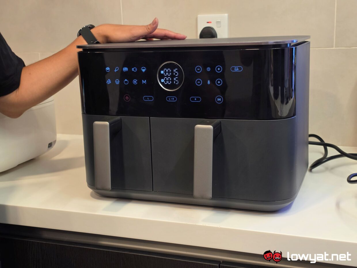 Greeting the group first is the kitchen area, where Xiaomi had its entire appliance section lined up. An airfryer in two flavours – single and double sections, the latter model able to cook different meats and vegetables at separate timings or altogether – a mini barista machine that grinds your beans and even comes with a steamer at the other end.
