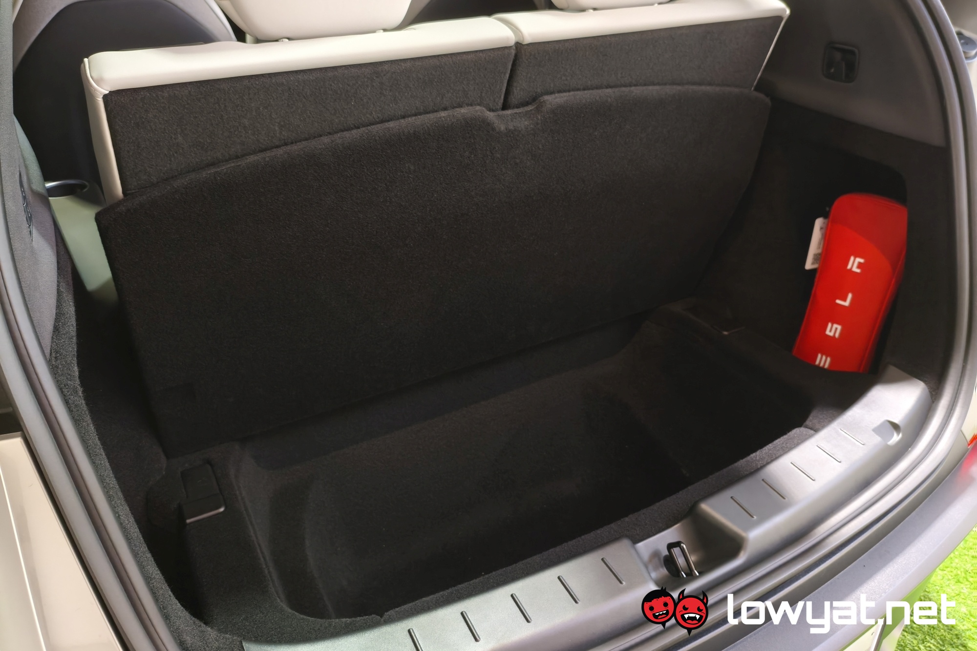 As basic as they are compared to the front row seats, they are still electrically reclinable. They can’t lean back much on account of what little headroom that’s left, but you can electrically fold them forwards from the back with the boot raised. In fact, you can even do this to the second row seats. This is for when you need to move really long luggage. At a glance, you don’t get a flat surface here, but there’s a trick you can do to “fix” that. This is done by lifting the floor board, lifting the stands on both sides, then putting the floor board back, upside down.