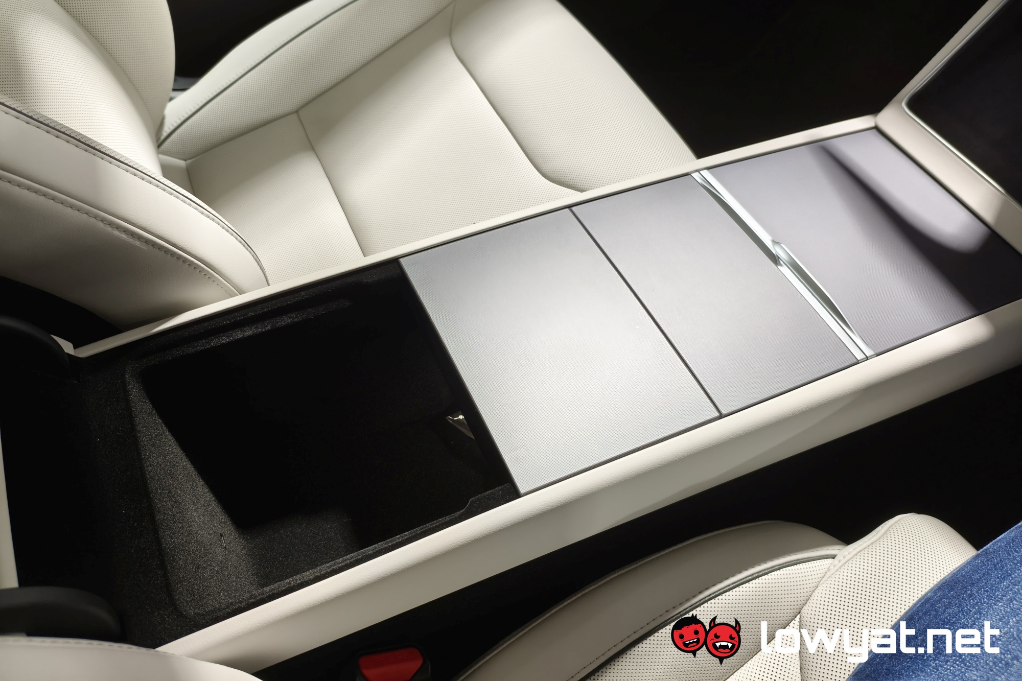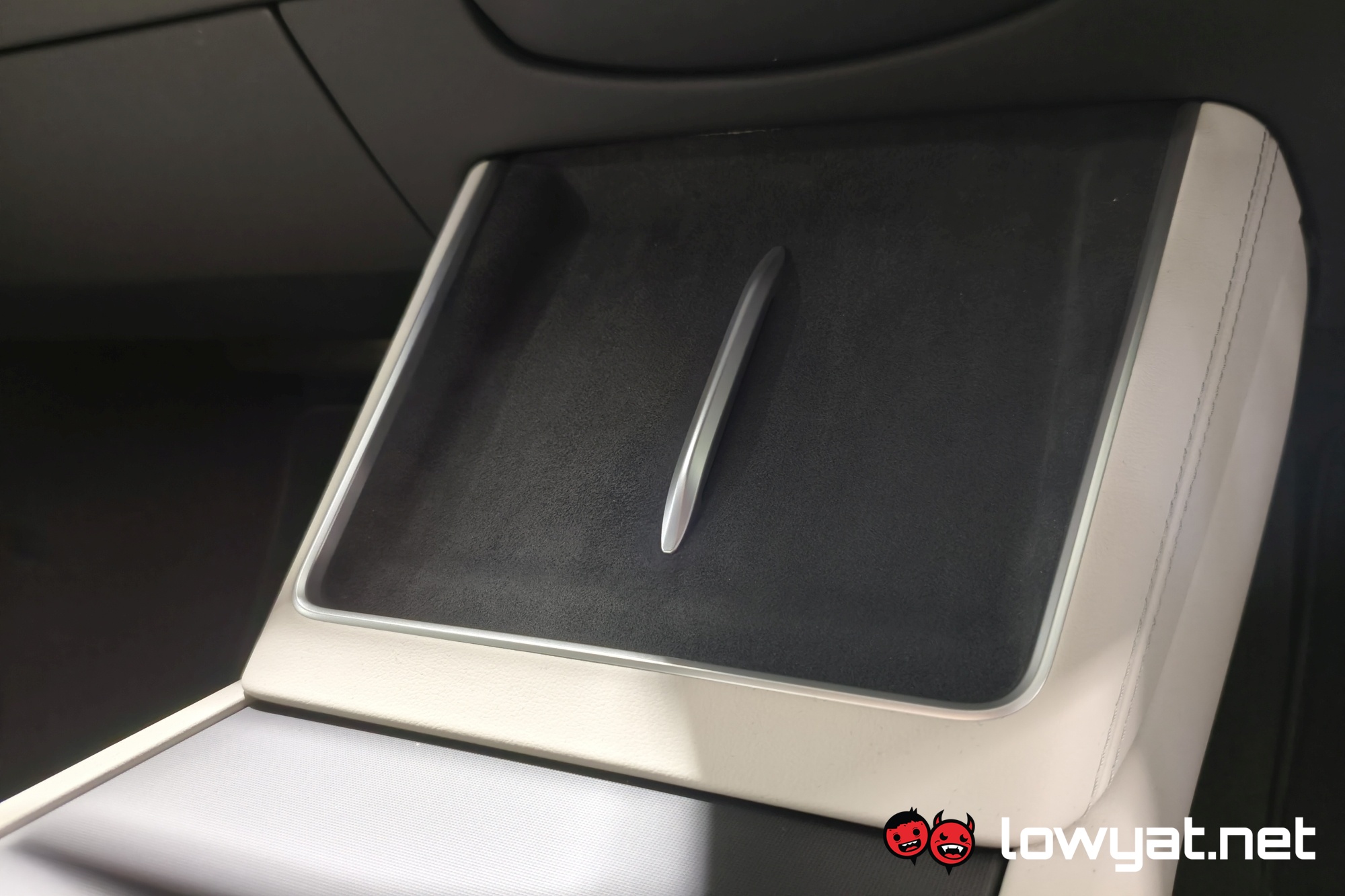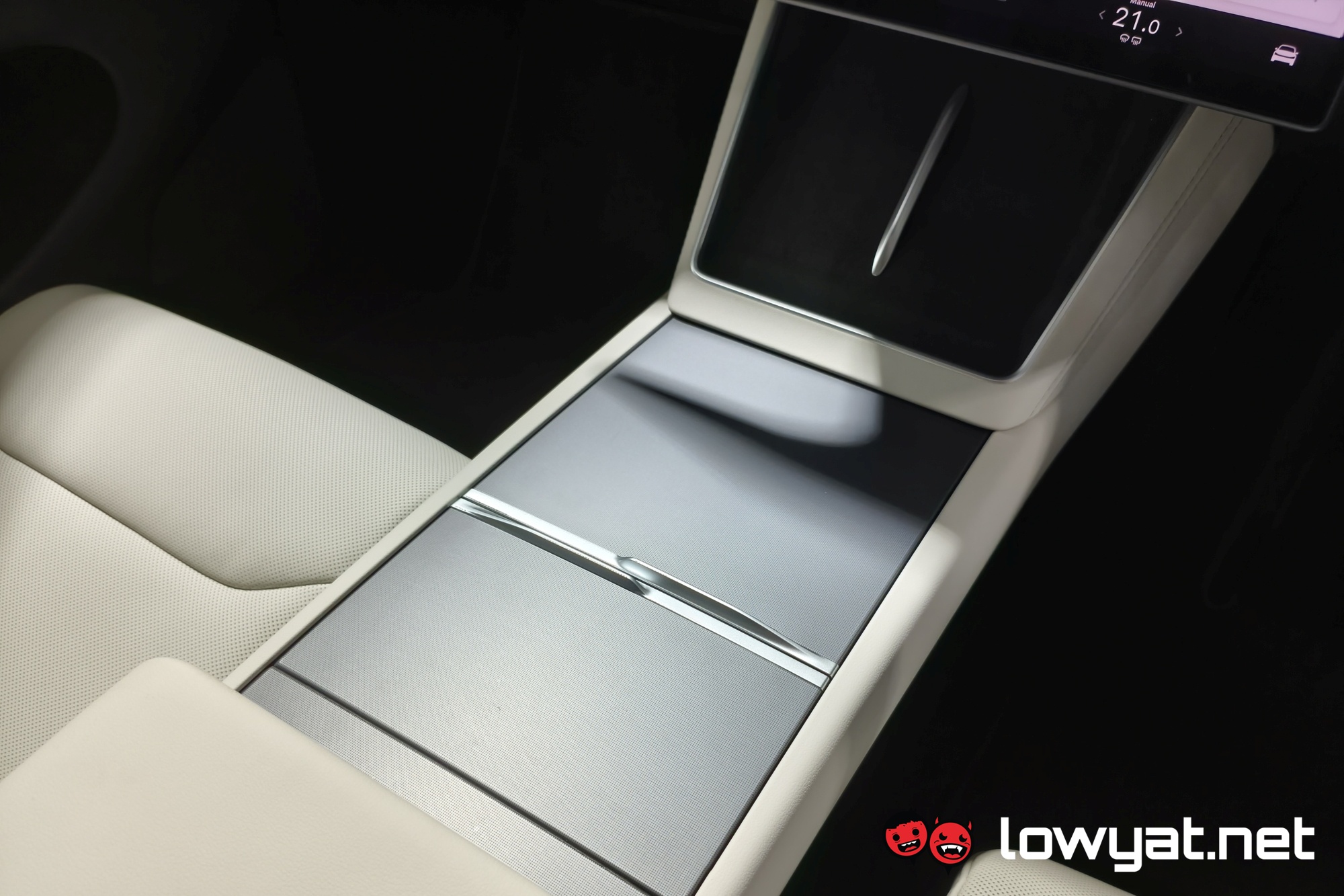 Inside, the centre console is mostly identical, from the dual wireless charging pads down to the 8-inch screen for the second-row passengers. That being said, the wireless chargers are now 50W and 30W for the driver and passenger sides respectively. The company also notes that the main screen in front measures 16 inches, and as with prior Teslas, just about everything is done from here. Even opening the glove box, believe it or not.