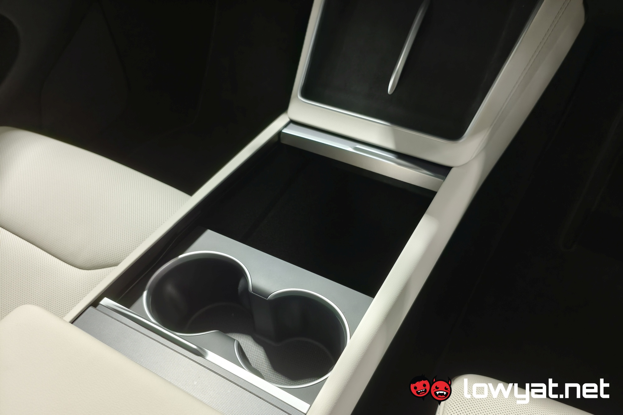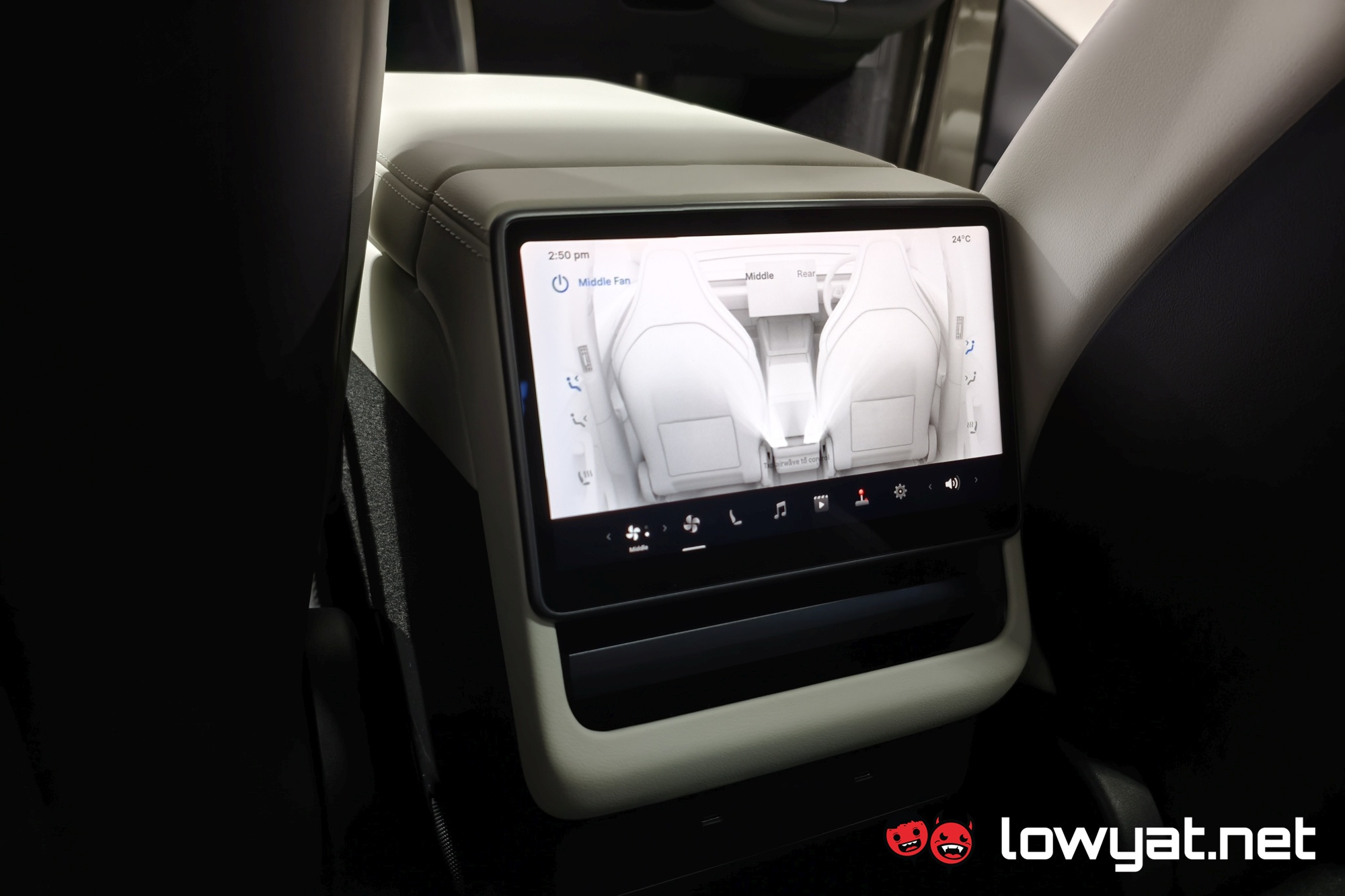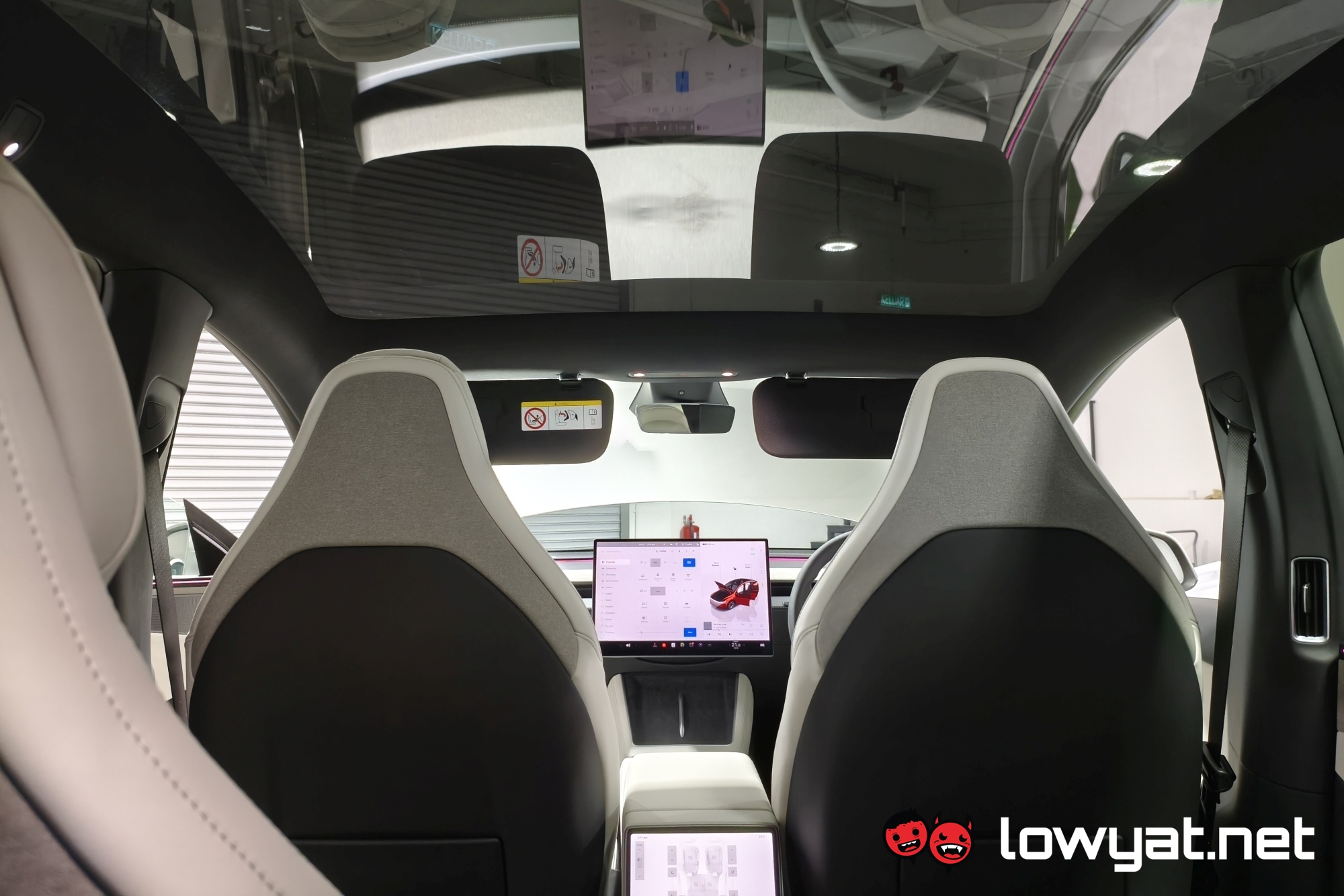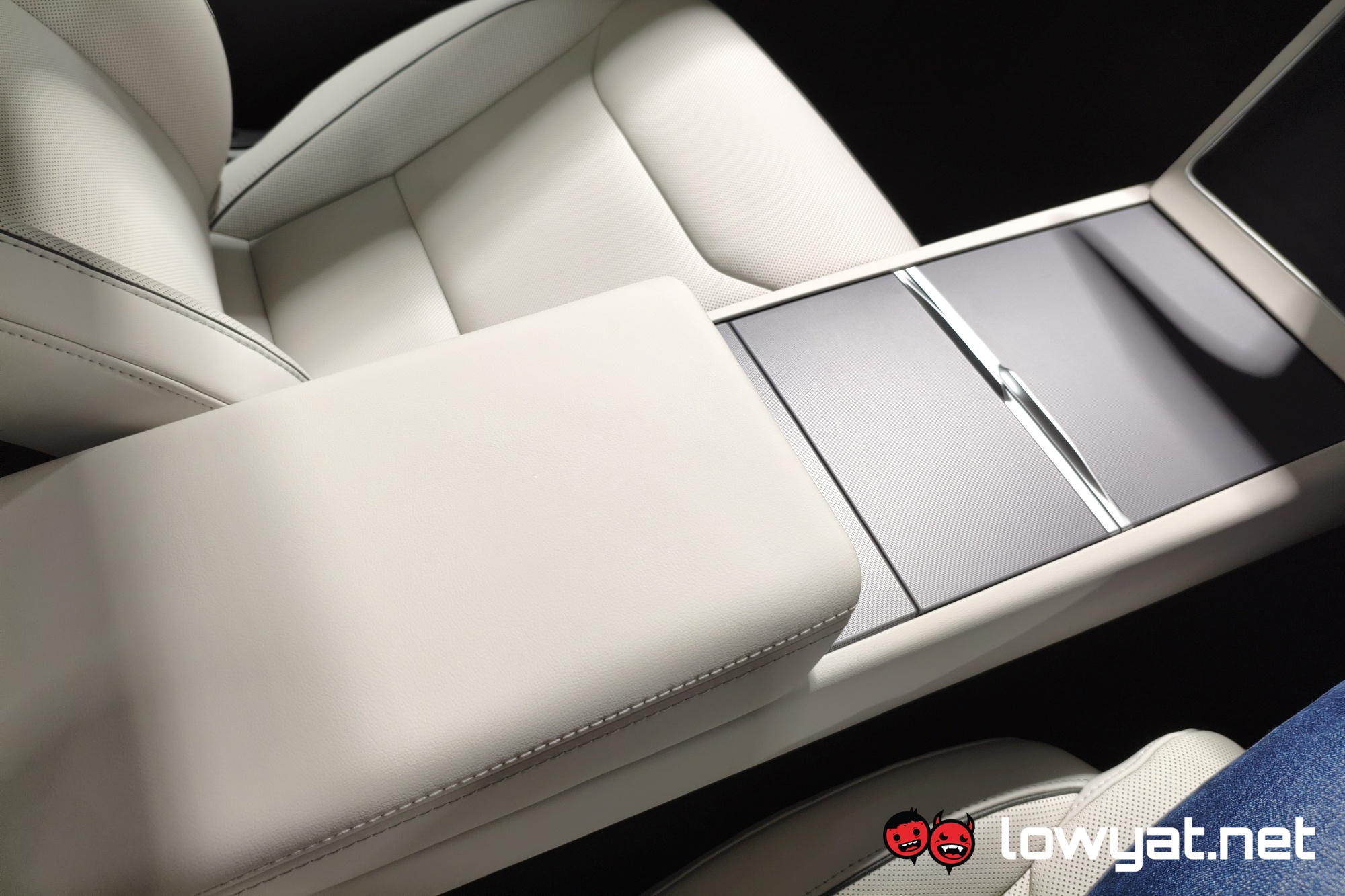 Inside, the centre console is mostly identical, from the dual wireless charging pads down to the 8-inch screen for the second-row passengers. That being said, the wireless chargers are now 50W and 30W for the driver and passenger sides respectively. The company also notes that the main screen in front measures 16 inches, and as with prior Teslas, just about everything is done from here. Even opening the glove box, believe it or not.