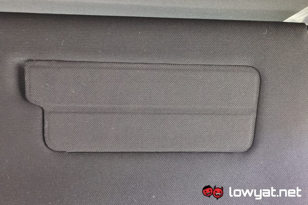 As basic as they are compared to the front row seats, they are still electrically reclinable. That being said, with what little headroom that’s left, you can’t make them lean back much. On the flip side, you can electrically fold them forwards from the back with the boot raised. In fact, you can even do this to the second row seats. This is for when you need to move really long luggage. At a glance, you don’t get a flat surface here, but there’s a trick you can do to “fix” that. You do this by lifting the floor board, lifting the stands on both sides, then putting the floor board back, upside down.